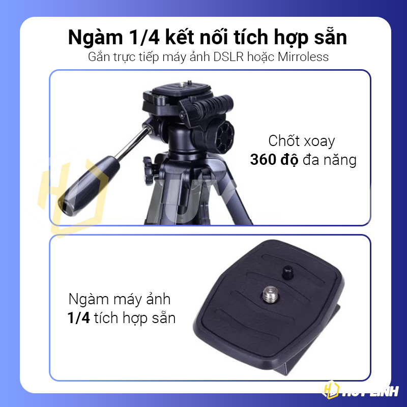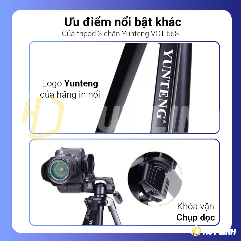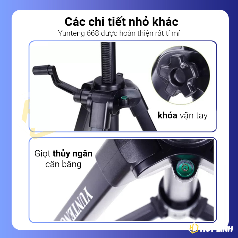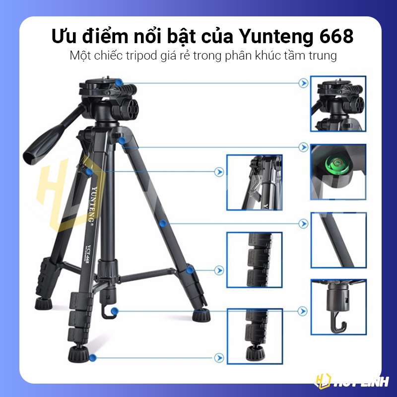 - Nguyên bộ sản phẩm: Chân đế VCT-668 + Kẹp gắn điện thoại Yunteng