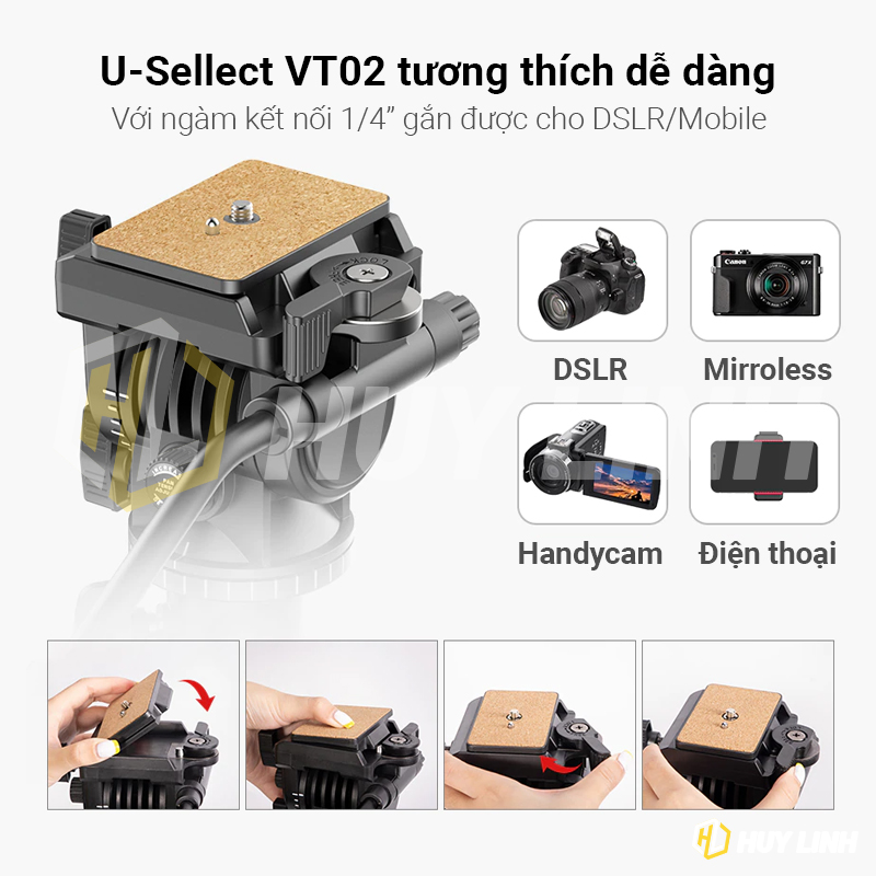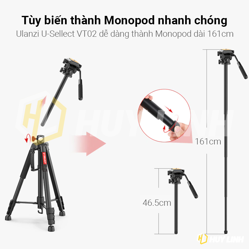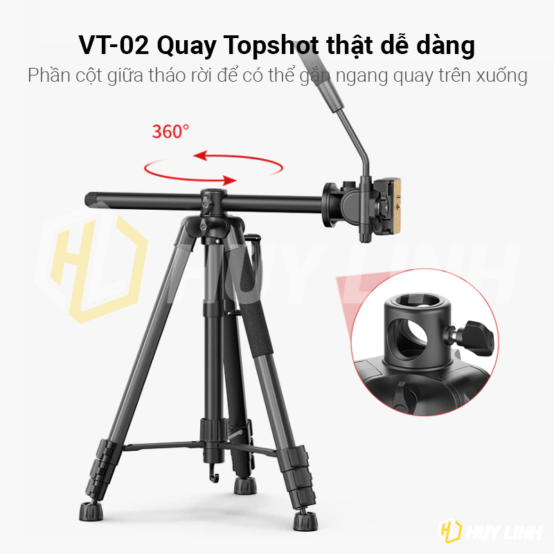 Ulanzi VT02 là mẫu chân tripod đa năng của thương hiệu Ulanzi. Ngoài chức năng là giá đỡ 3 chân cho máy ảnh, cột trung tâm có thể tùy chỉnh nhanh chóng thành monopod hay gắn ngang để quay topshot từ trên xuống nhanh chóng. Tripod Ulanzi VT02 được nâng cấp với đầu ballhead là đầu dầu có tay nắm dễ dàng điều chỉnh góc quay toán cảnh 360. Với chiều cao tối đa lên tới 183cm còn chiều dài gấp gọn chỉ 62cm, trong lượng chỉ 1,9kg, Chân tripod cho máy ảnh Ulanzi VT02 sẽ là phụ kiện không thế thiếu cho các nhiếp ảnh gia chuyên nghiệp hay các vloger.