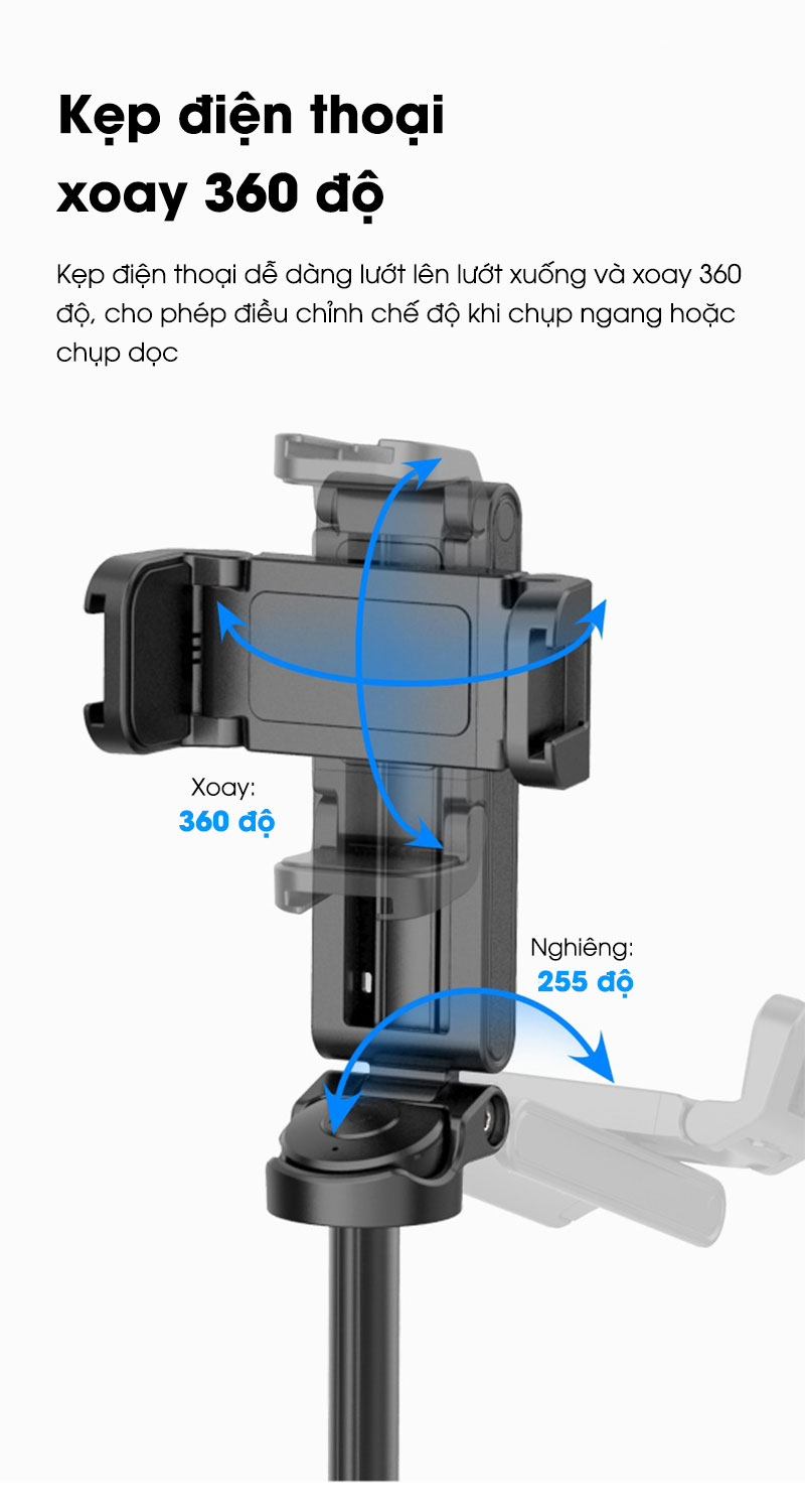 - Kẹp điện thoại xoay 360 độ, điều chỉnh góc quay theo ý muốn.