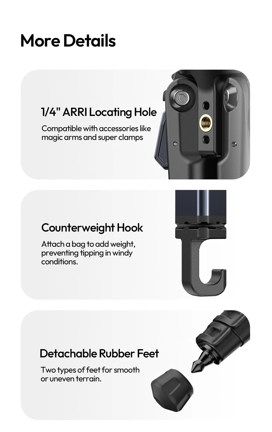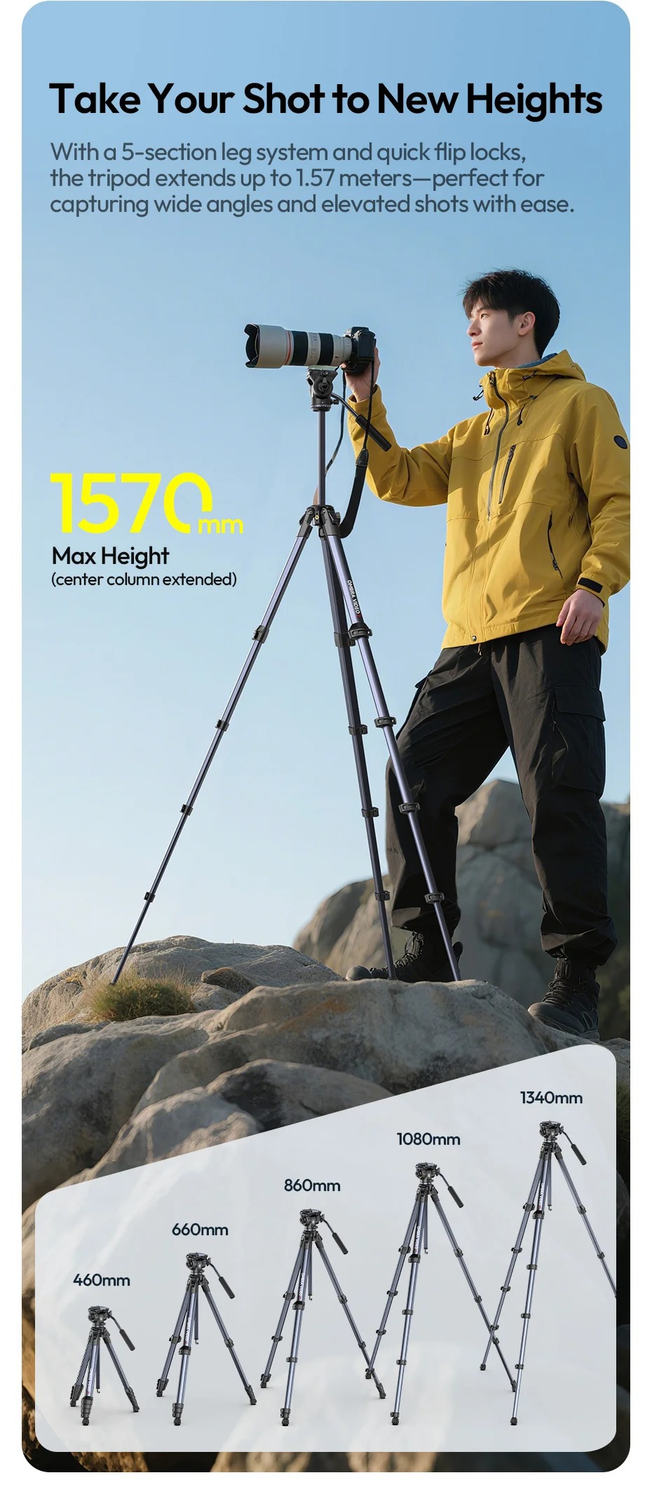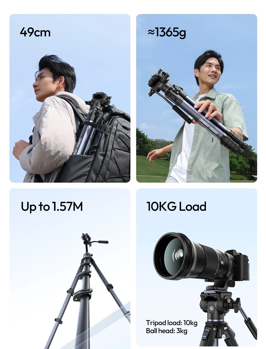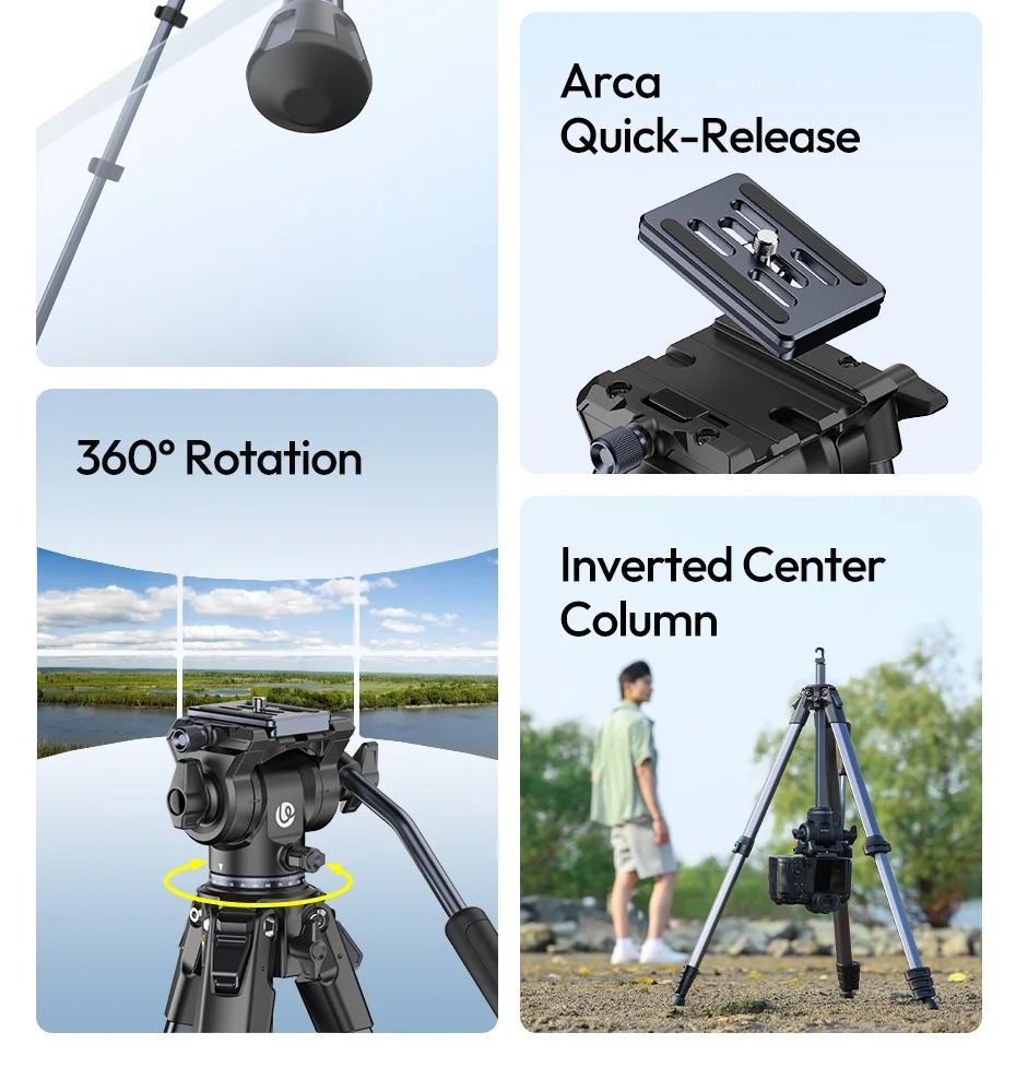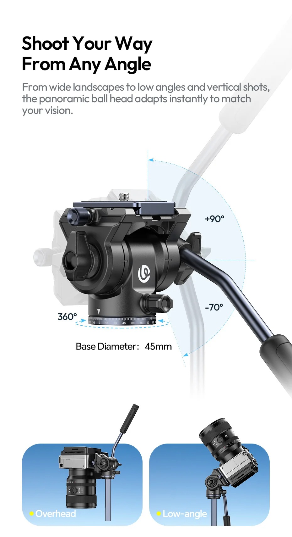 - Tích hợp đầu ballhead Panoramic hỗ trợ chụp các góc overhead và low-angel một cách tối đa.