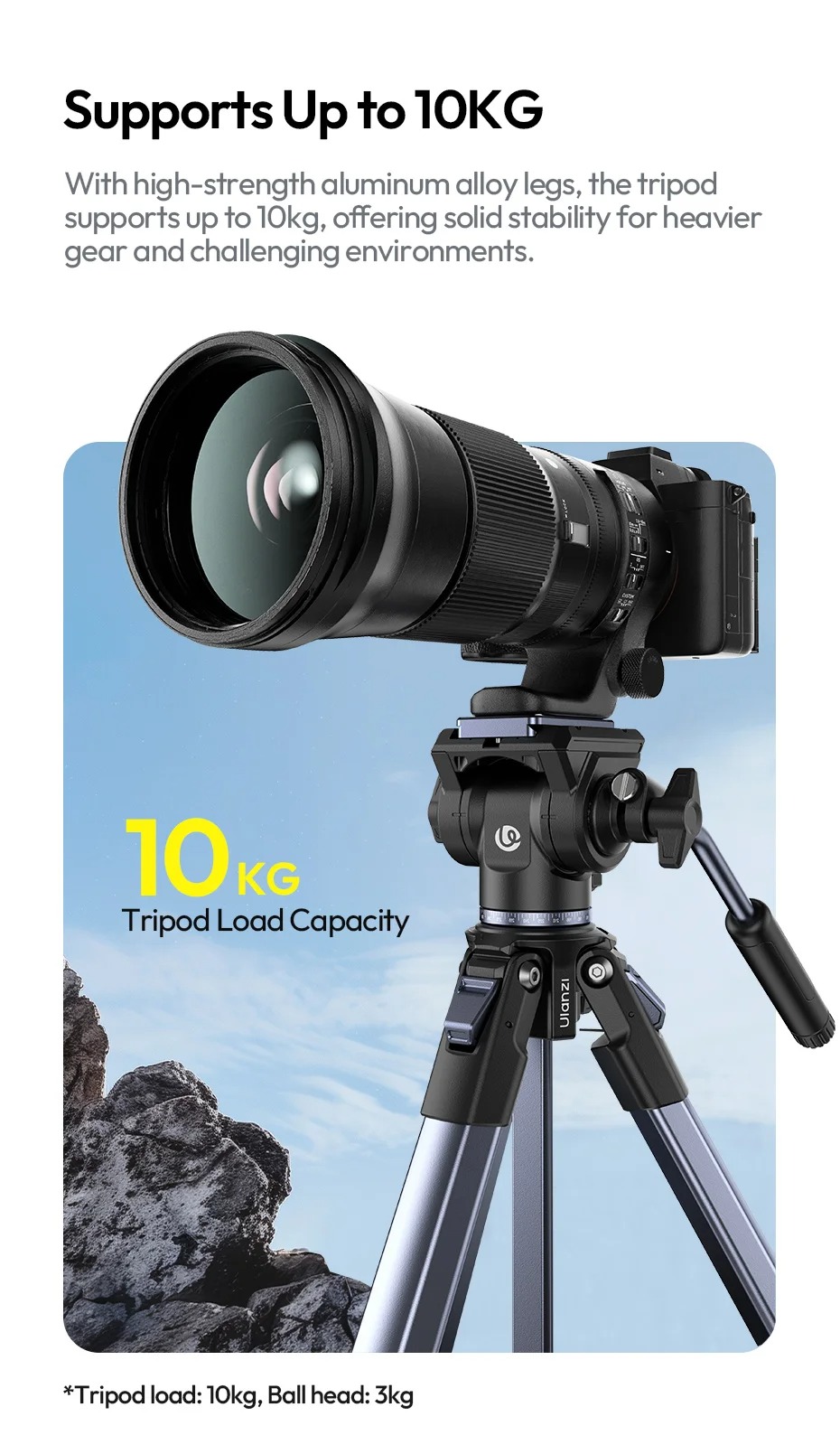 - Thiết kế gọn nhẹ với chiều cao tối thiểu 49cm, cùng chất liệu hợp kim nhôm cao cấp hỗ trợ tải trọng lên tới 10kg
