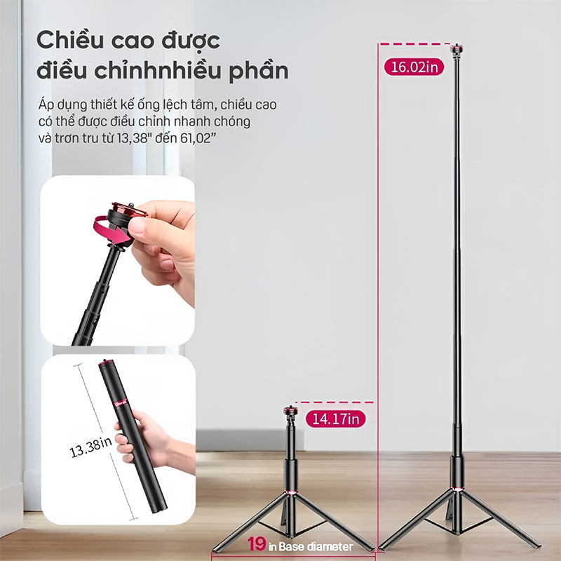 - Có thể điều chỉnh độ cao dễ dàng điều chỉnh độ cao từ 14 '' đến 62 '' để phù hợp với nhu cầu chiếu sáng của bạn.