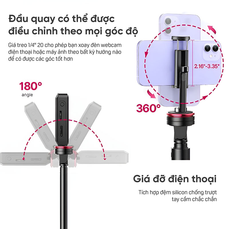 - Được sử dụng để gắn đèn zoom, điện thoại, máy ảnh, webcam, ..