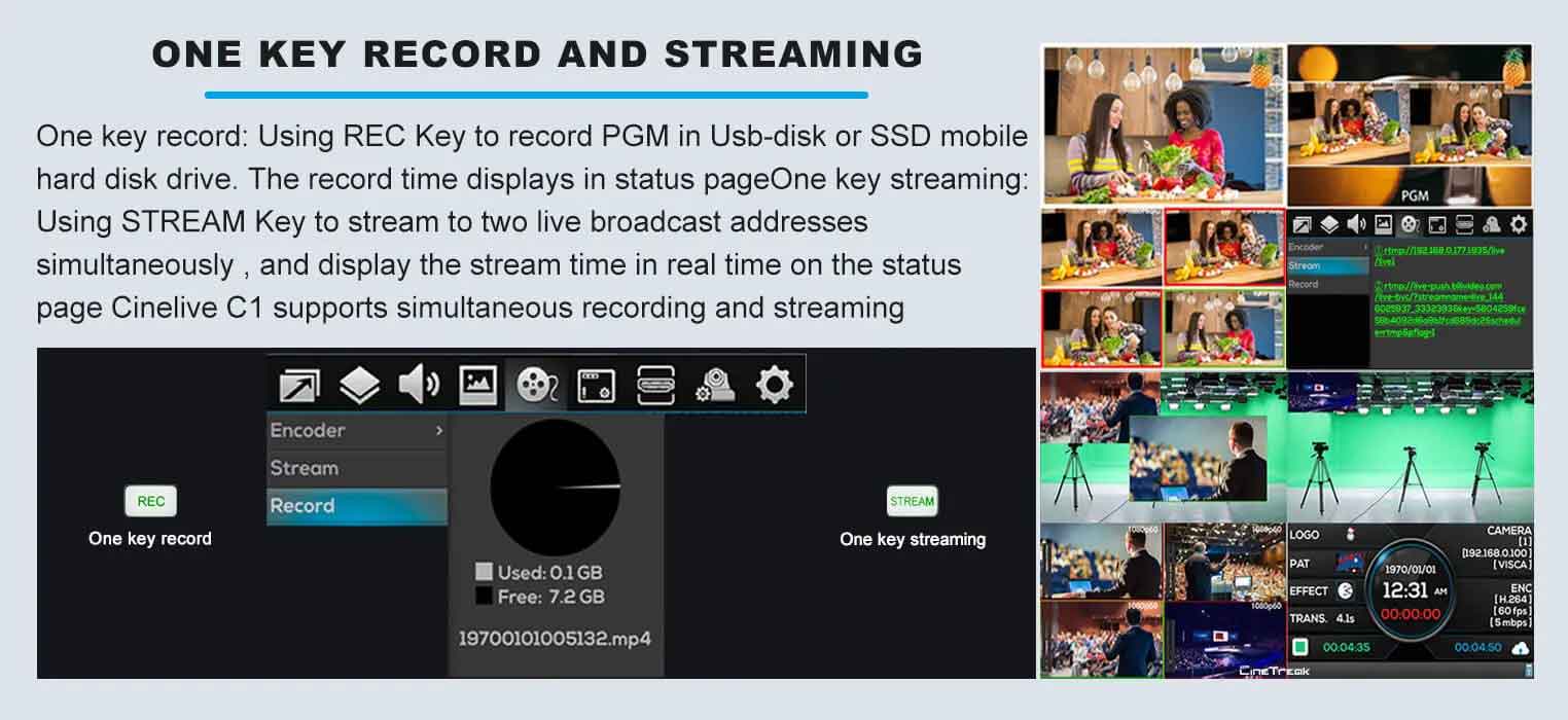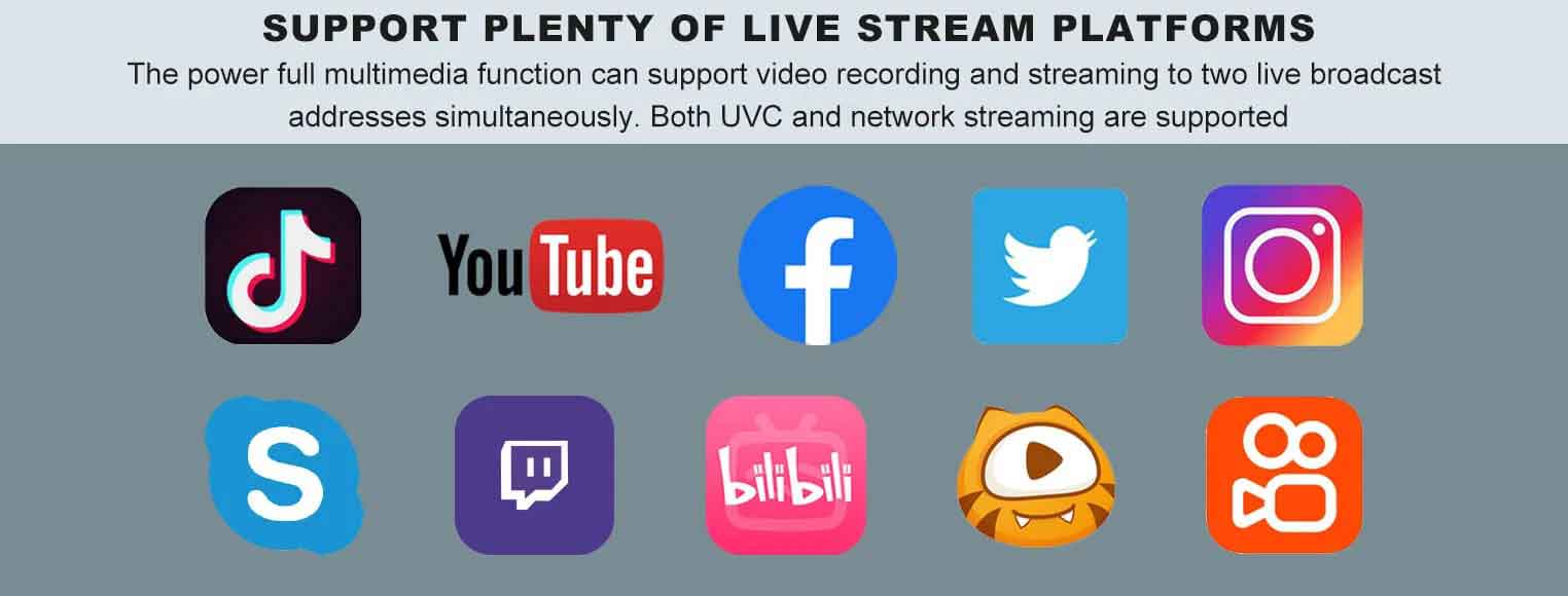 - Hỗ trợ livestream đa nền tảng RTMP với 1 key streaming