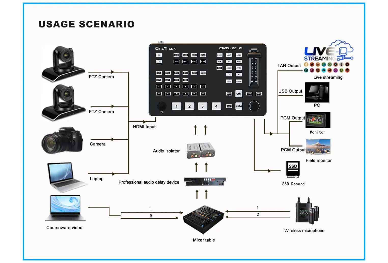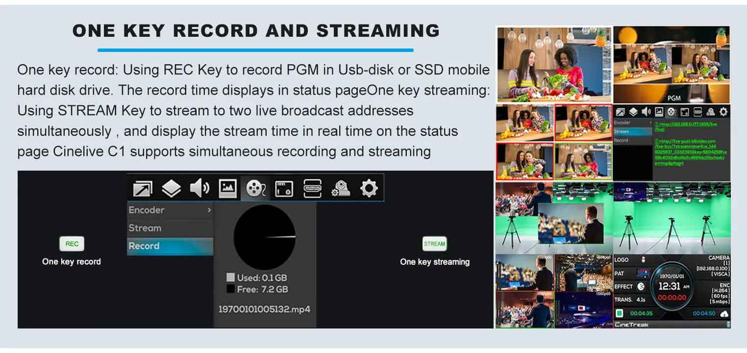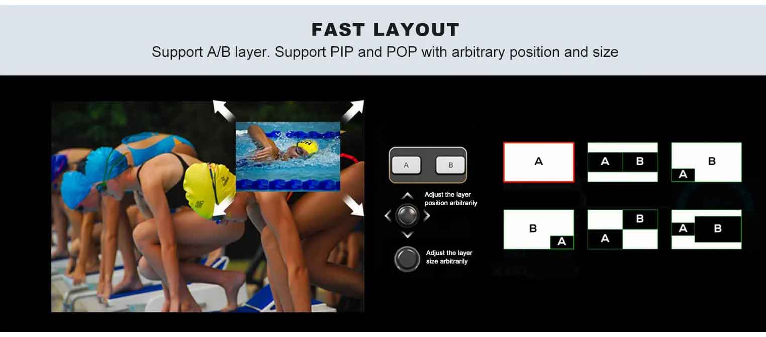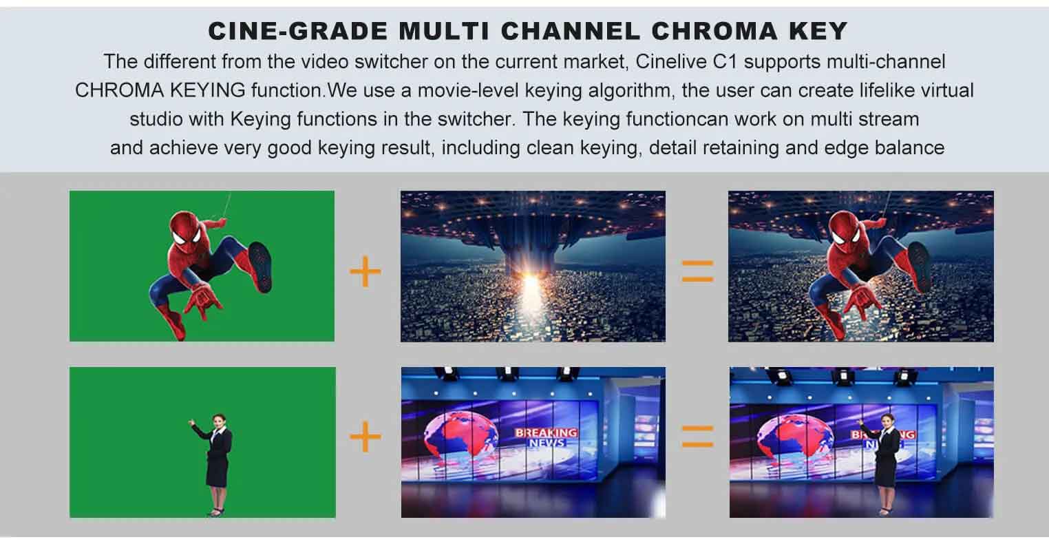 - Chuyển cảnh: WIPE(32 hiệu ứng)/MIX/DIP/ PATTERN/FREEZING/MUTE/FTB