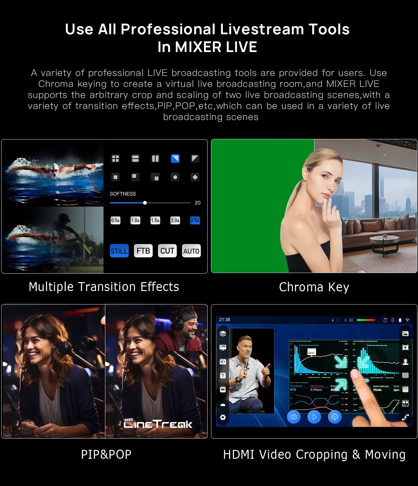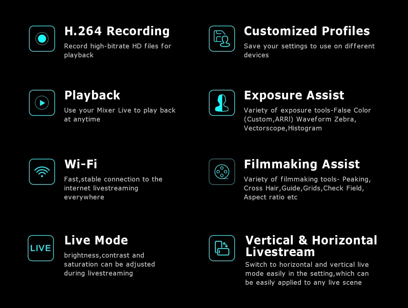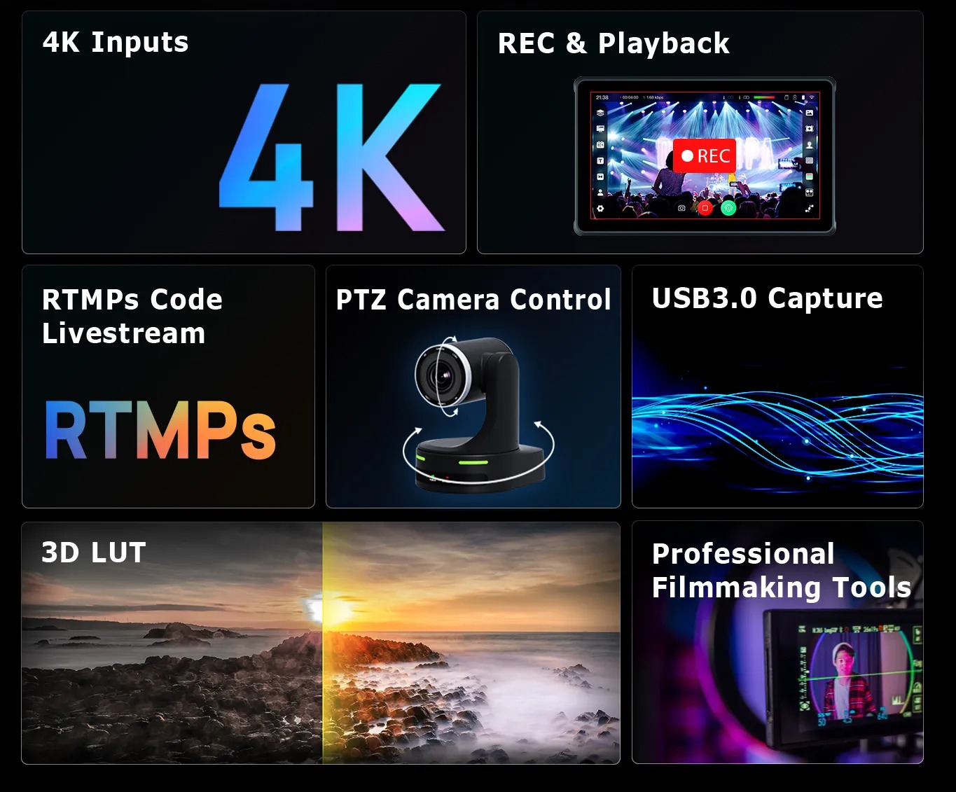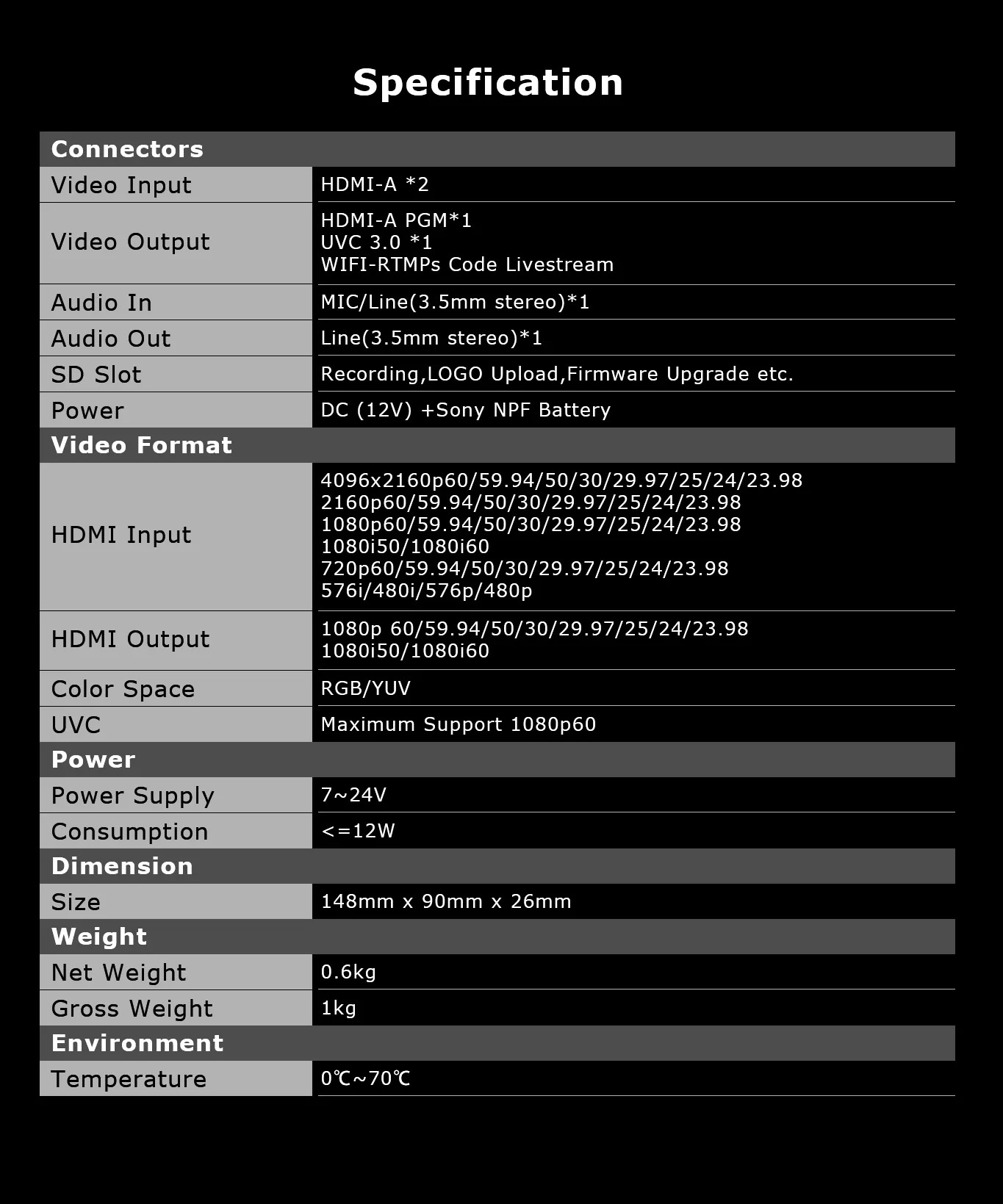 - Video đầu ra: HDMI-A/UVC3.0/WIFI-RTMPS