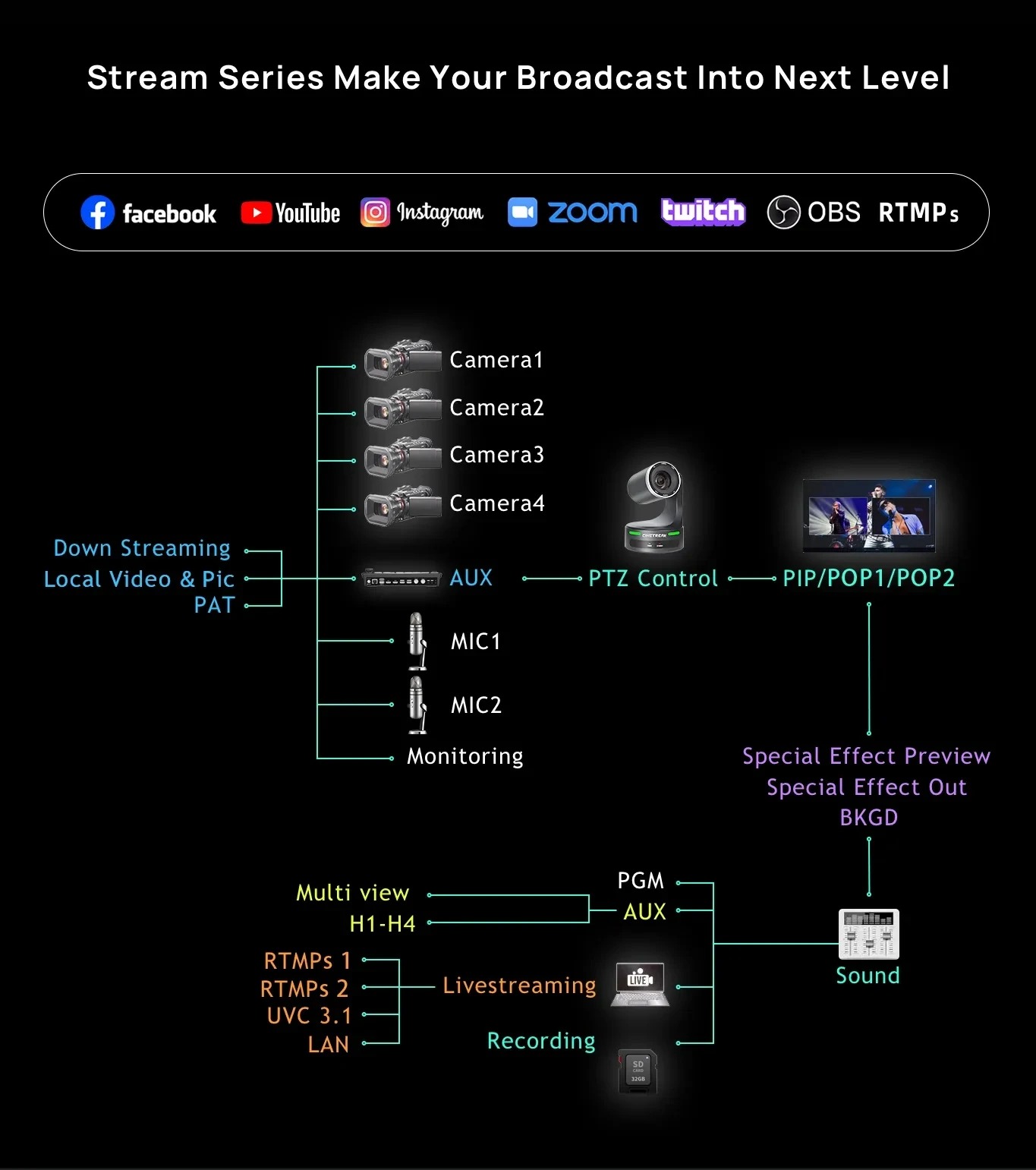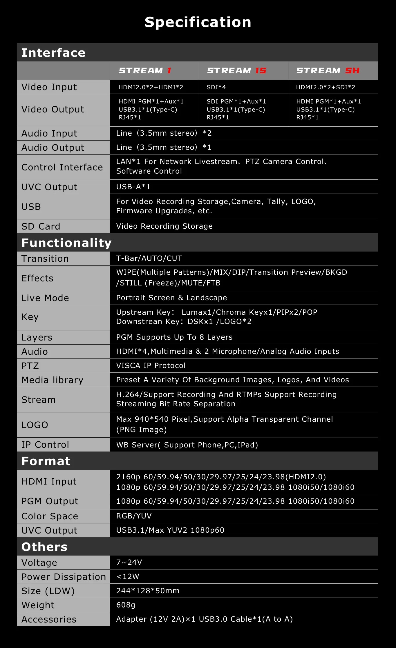 - Video đầu vào : 4 cổng SDI