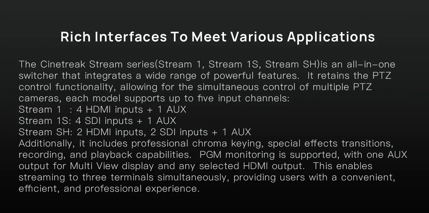 - Video đầu ra: SDI/USB3.1(type-C)/RJ45