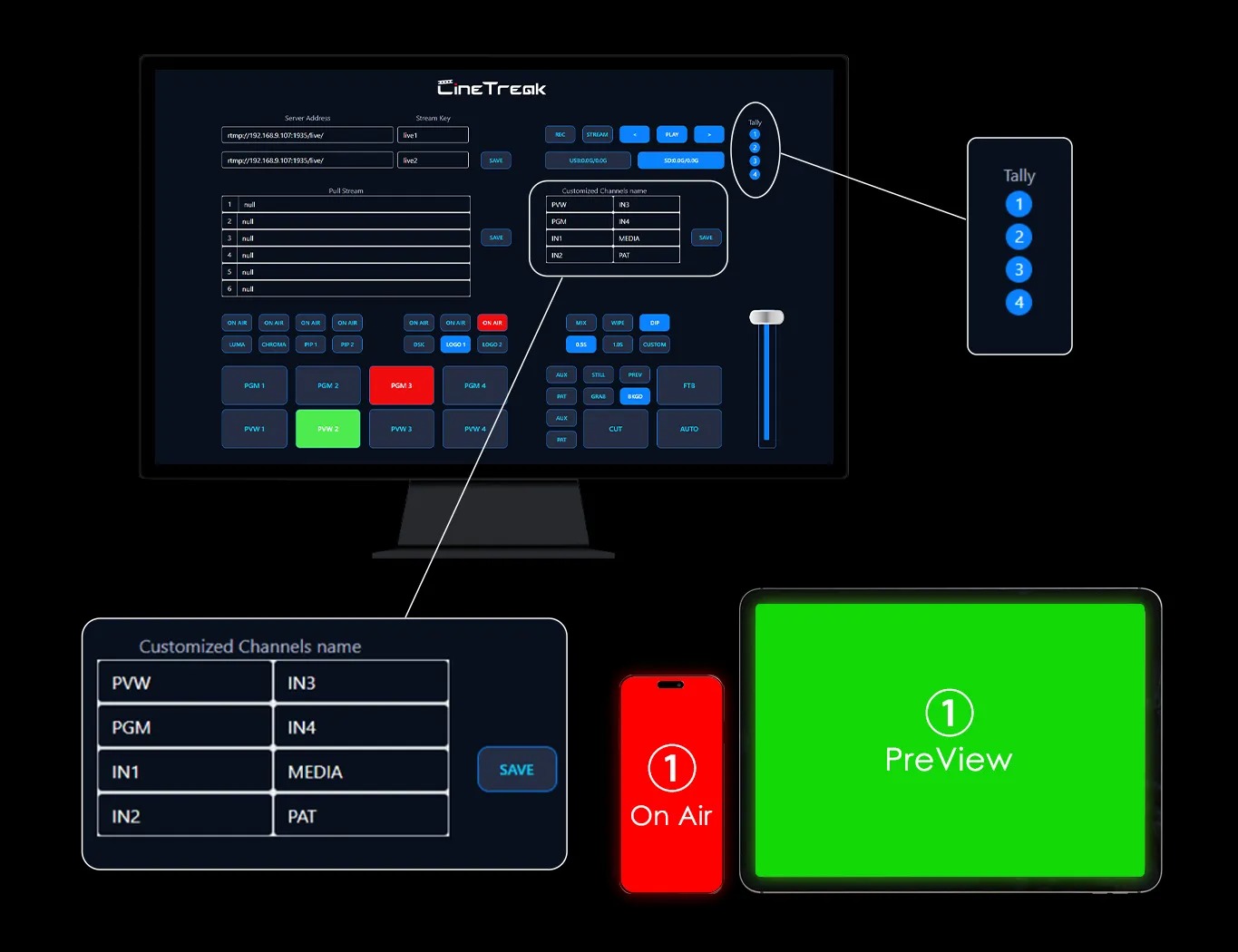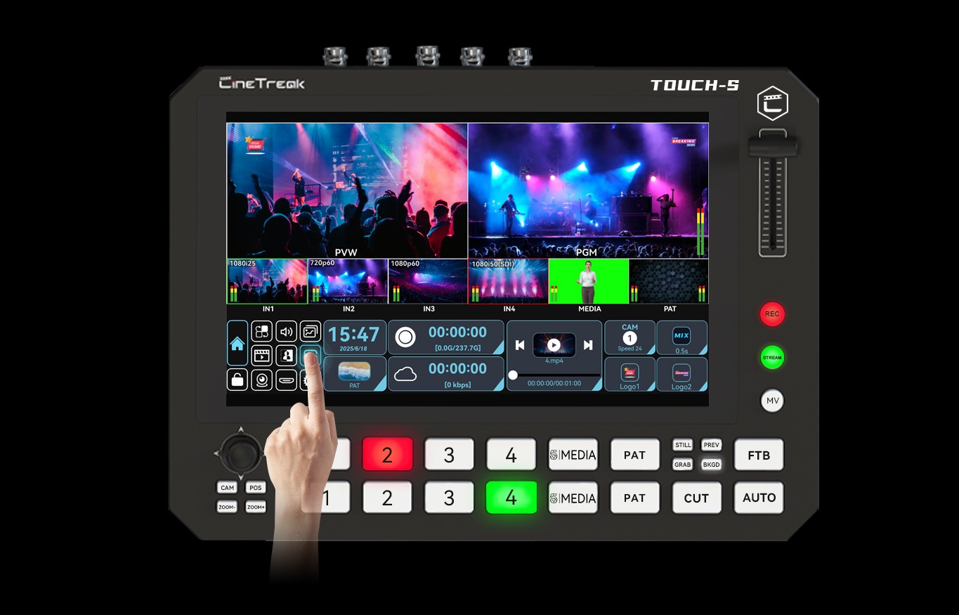 CINETREAK Touch-S là bộ chuyển mạch video switcher vừa là màn hình giám sát cảm ứng chuyên nghiệp, All In One (AIO) được thiết kế để phát trực tiếp, sản xuất nhiều máy quay và phát sóng khi đang di chuyển.