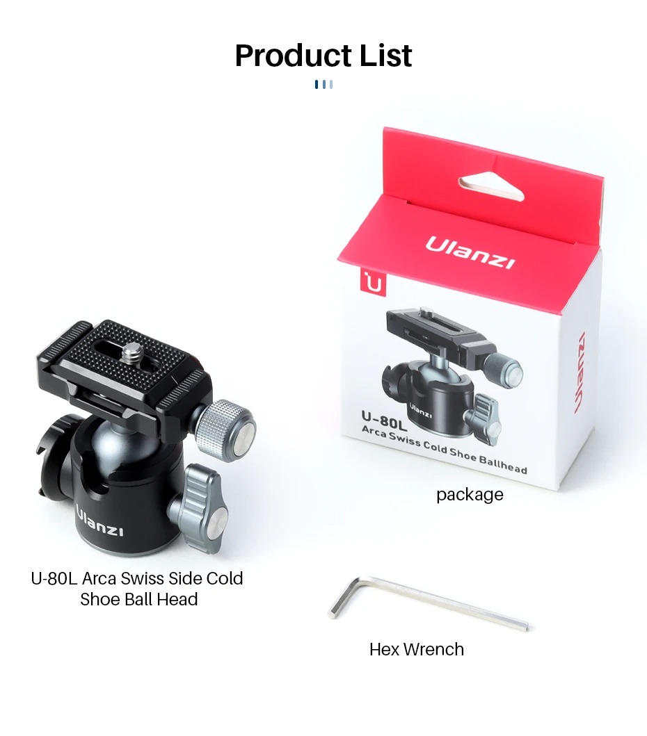 - 1 x Đầu ballhead Ulanzi U-80L Arca Swiss Side