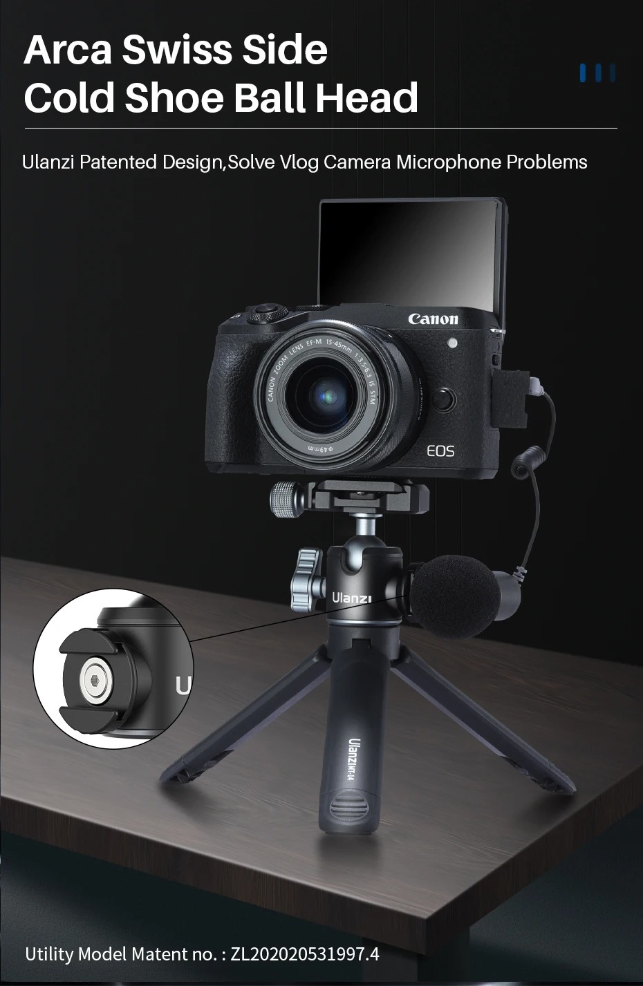 - Thiết kế ngàm cold shoe có thể xoay 360°, điều chỉnh góc phù hợp nhất cho micrô hoặc đèn quay vlog.