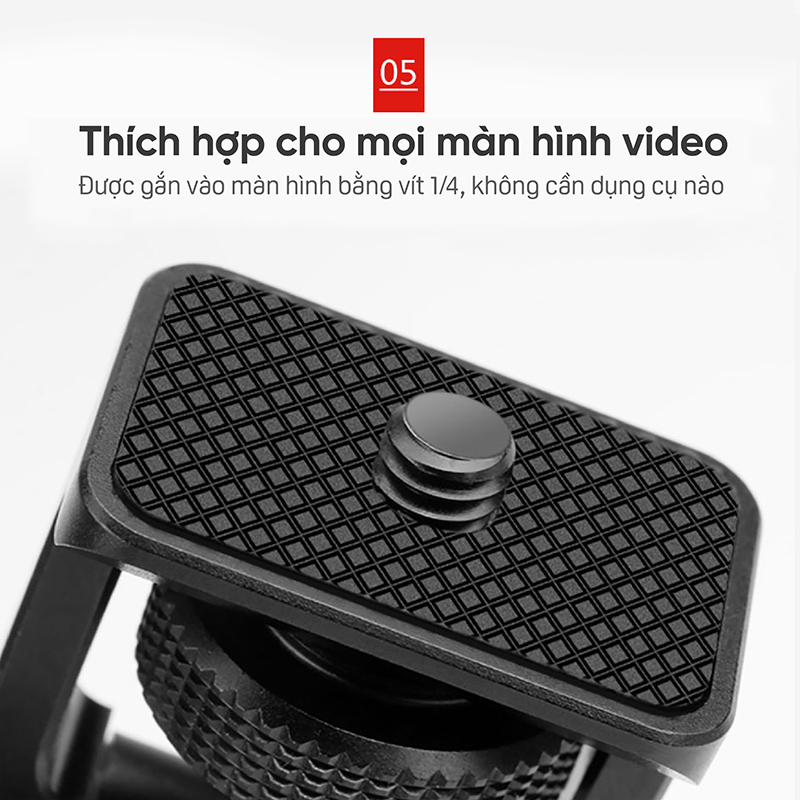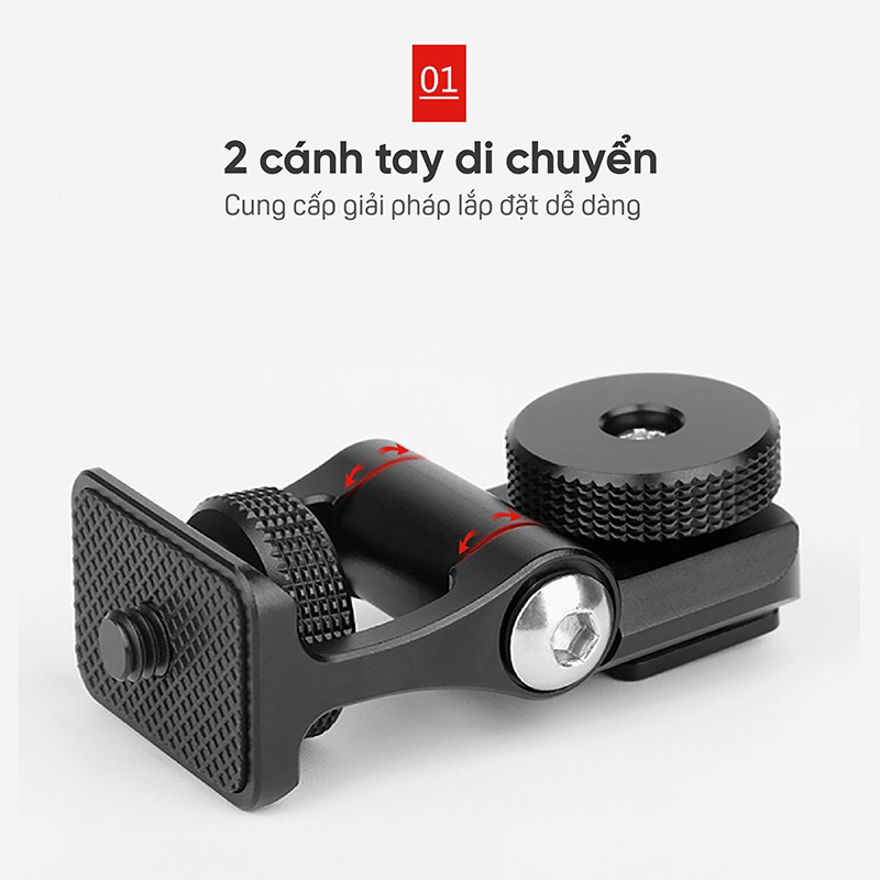 - Cánh tay đỡ thiết bị có thể điều chỉnh góc tùy ý với núm chỉnh tích hợp kèm theo, phạm vi điều chỉnh trên 180 độ