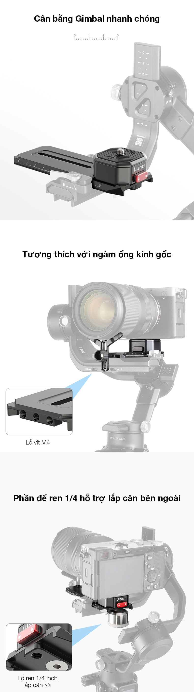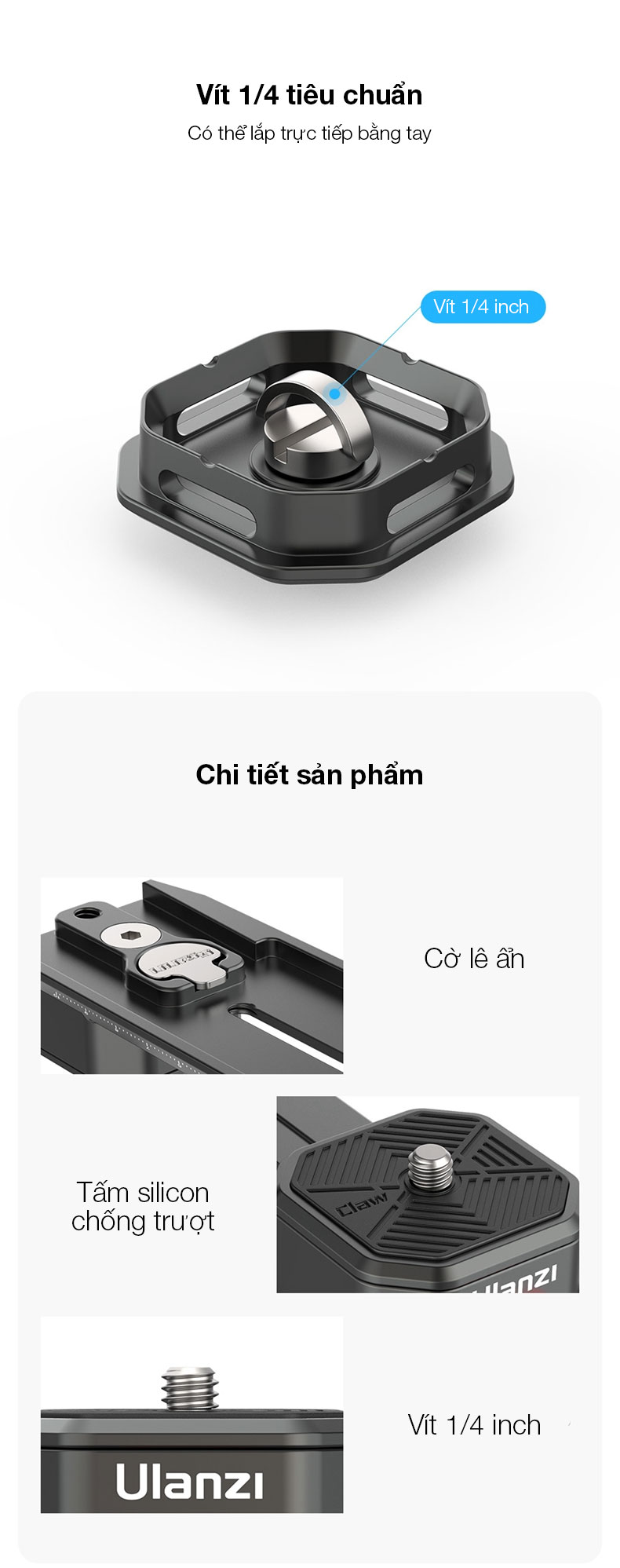 - Thiết kế nhân bản, vít 1/4 tiêu chuẩn có thể được lắp đặt trực tiếp bằng cách vặn tay.