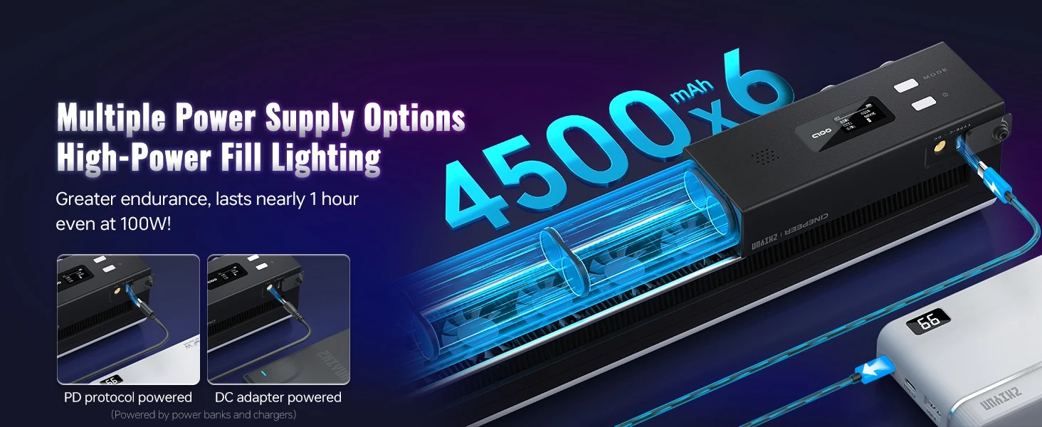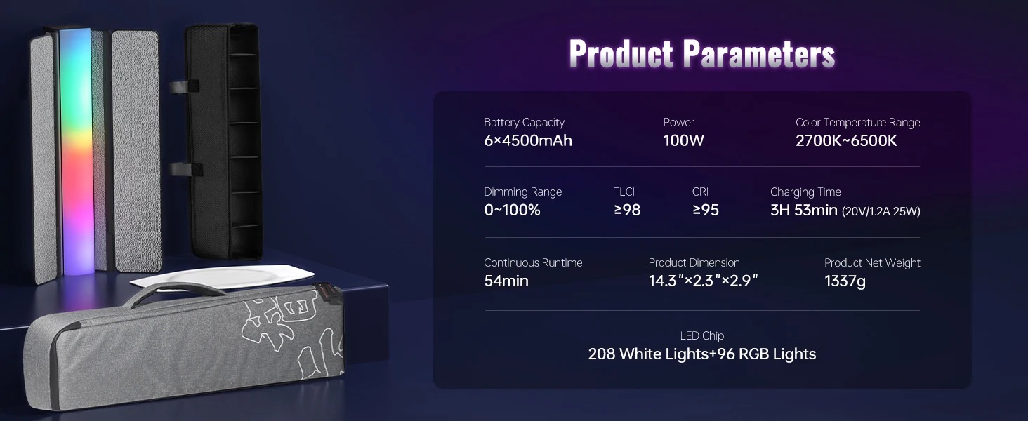 - Thời gian sử dụng liên tục ở 4300K/100% độ sáng: 54min