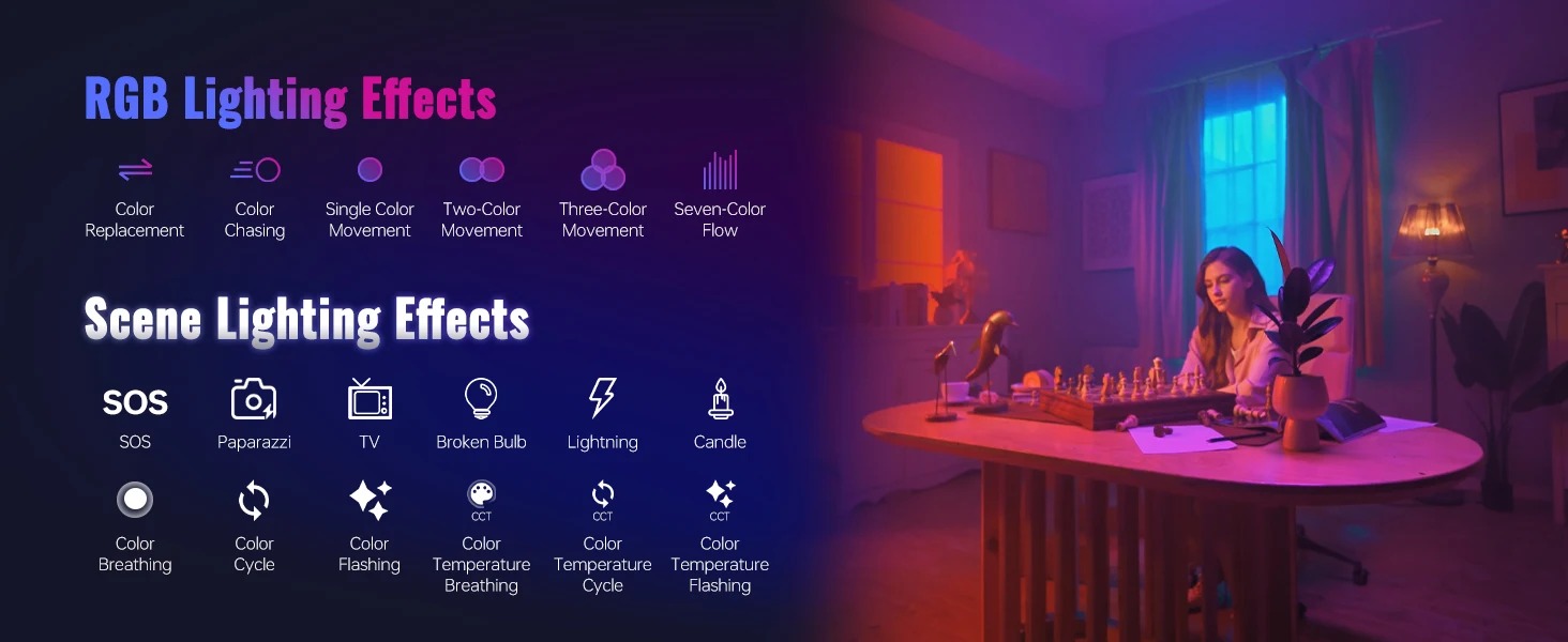 - Chế độ CCT: 4300K/100% độ rọi [lx] 3870 (1 mét)