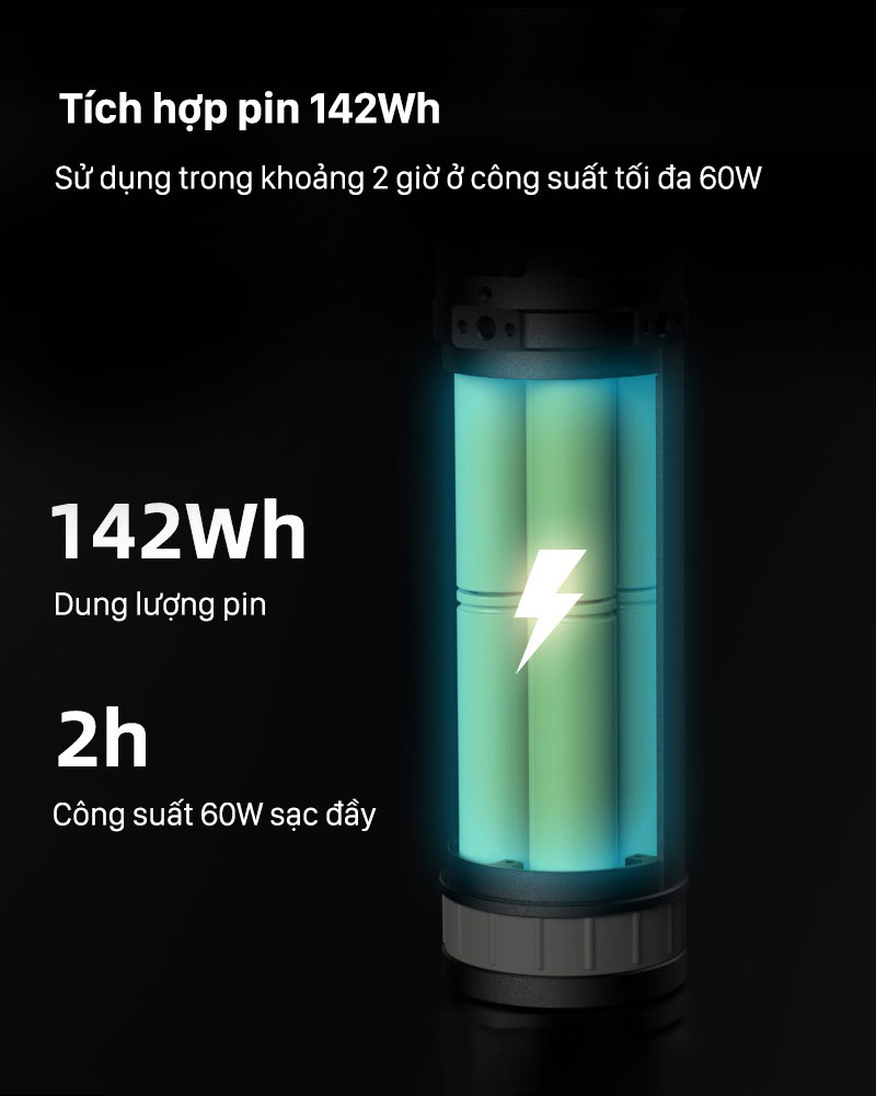 - Tích hợp pin 142Wh: Sử dụng trong 2 giờ ở công suất tối đa 60W.