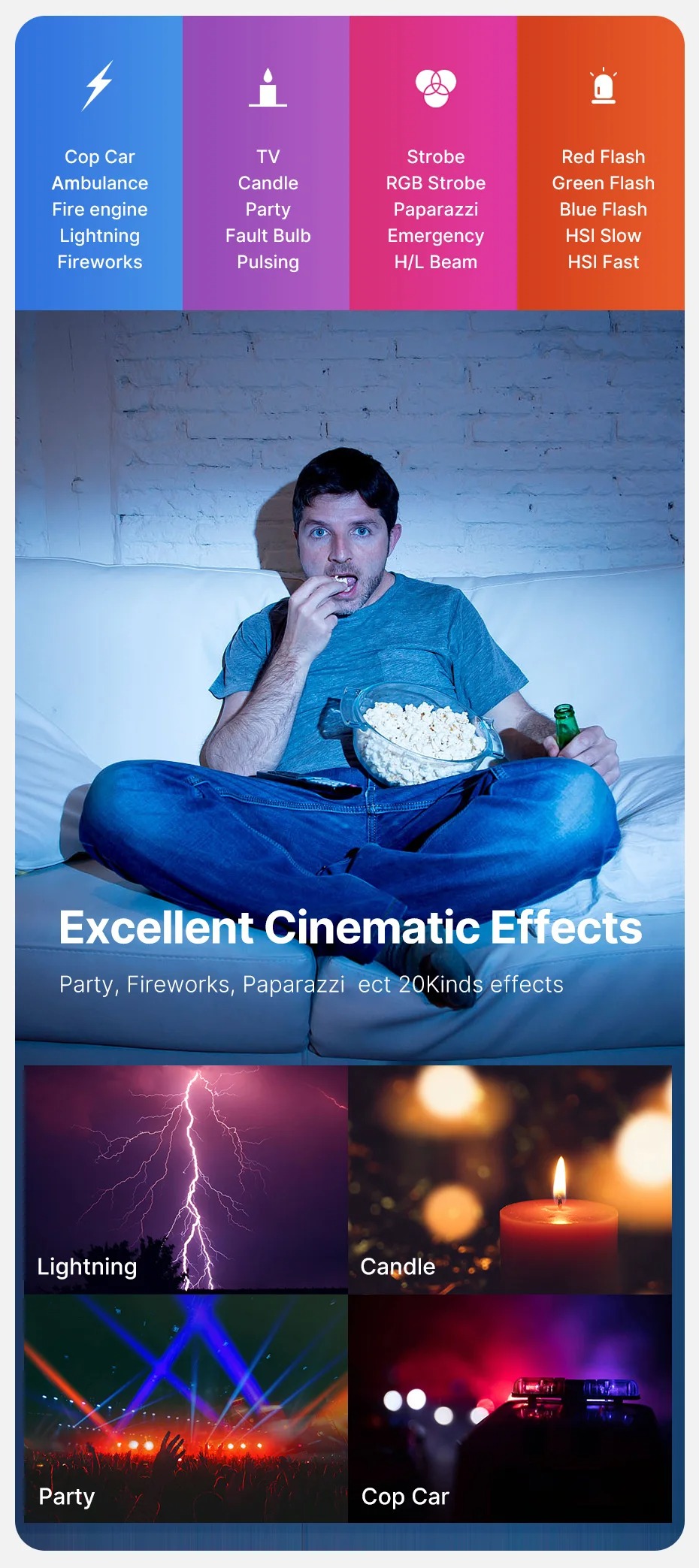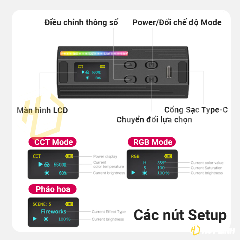 - Tích hợp Led: 33 hạt led trắng, 33 hạt vàng, 22 hạt Led RGB