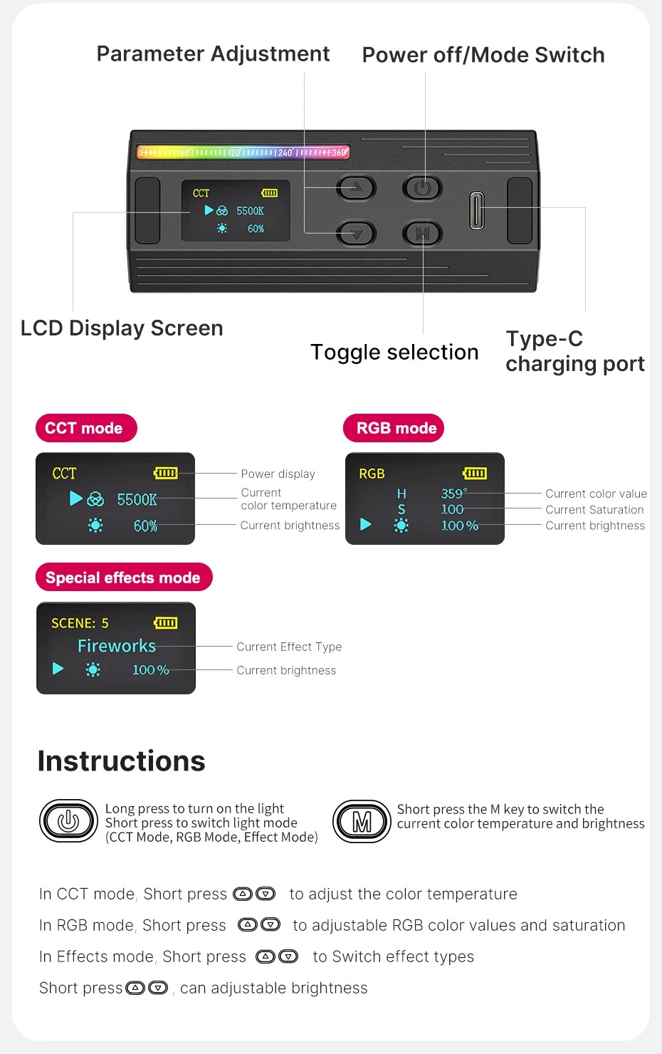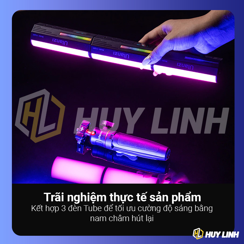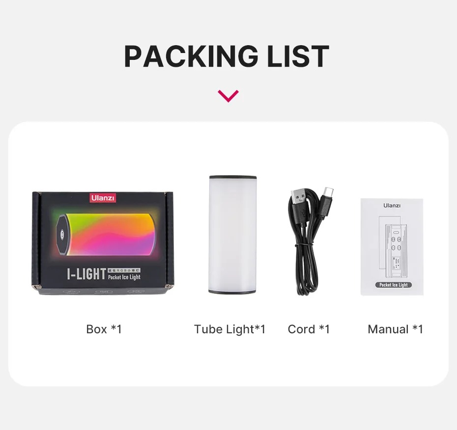 Đèn LED RGB Ulanzi I-Light là đèn ống mini cầm tay với kích thước dài chỉ 10cm dễ dàng bỏ túi mang theo sử dụng. Đèn led mini cầm tay I-Light được trang bị màu RGB với 20 hiệu ứng ánh sáng mang đến cảm hứng sáng tạo cho bạn. Đèn được tích hợp nam châm giúp bạn dễ dàng setup lên các bề mặt kim loại. Ở 2 đầu đèn Ulanzi i-Light có tích hợp giao diện tiêu chuản 1/4 kép thuận tiện cho các thiết bị hỗ trợ quay phim, chụp ảnh để mang đến hiệu ứng ánh sáng tốt hơn.