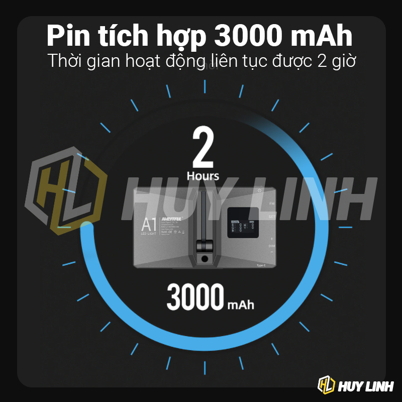 - Thời gian sử dụng: 2 giờ tùy cường độ sáng