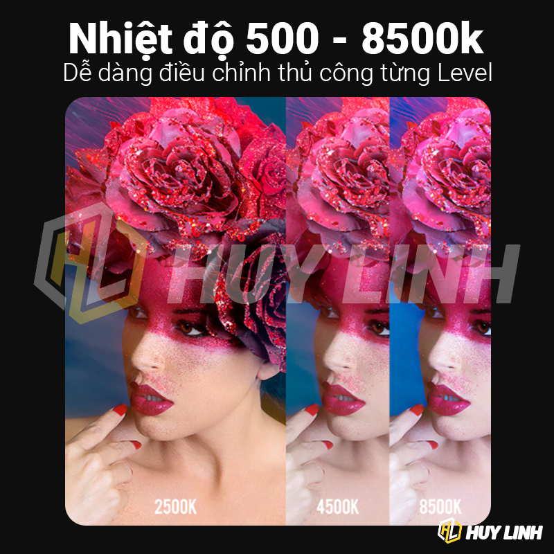 - Dãi nhiệt độ màu: 2500 - 8500K (+-300K)