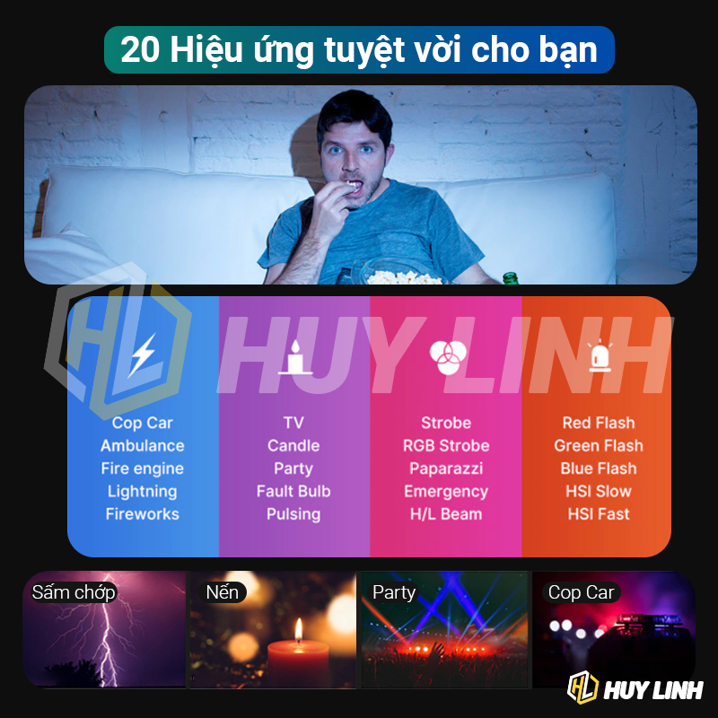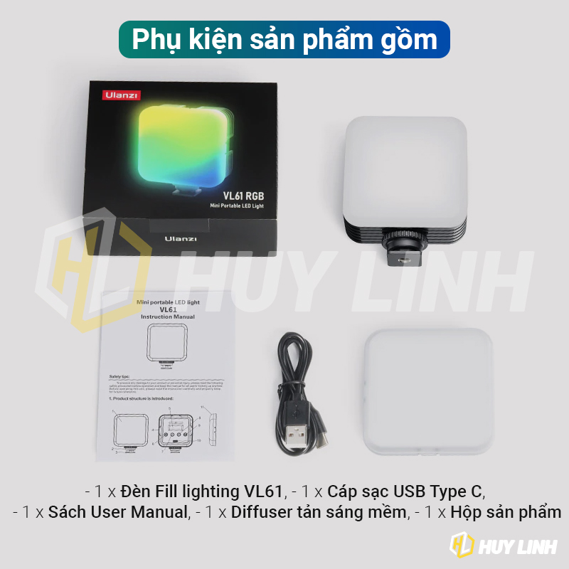 - LED Hạt tổng 61 gồm: 18 chiếc trắng, 18 chiếc ấm, 25 chiếc RGB
