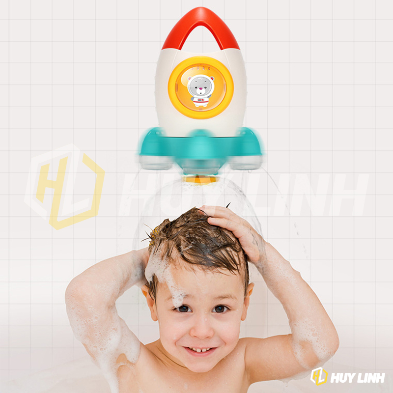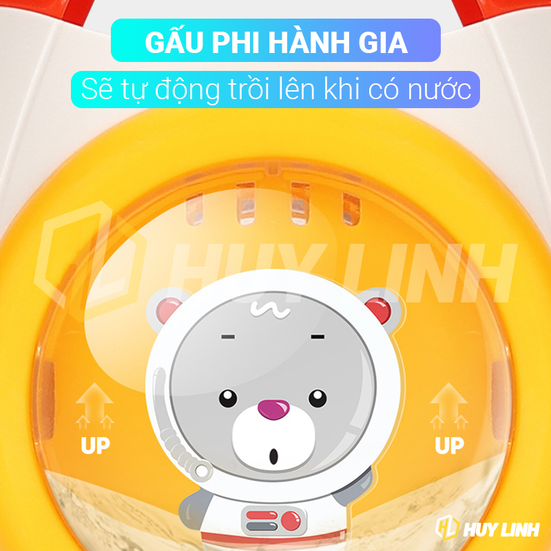 - Khi chứa đầy nước bên trong tên lửa sẽ quay vòng vòng và nhả nhiên liệu là nước để đưa chú gấu lên vũ trụ. Máy bay thiết kế ngộ nghĩnh, bo tròn mọi chi tiết giúp ba mẹ an tâm khi bé chơi đùa