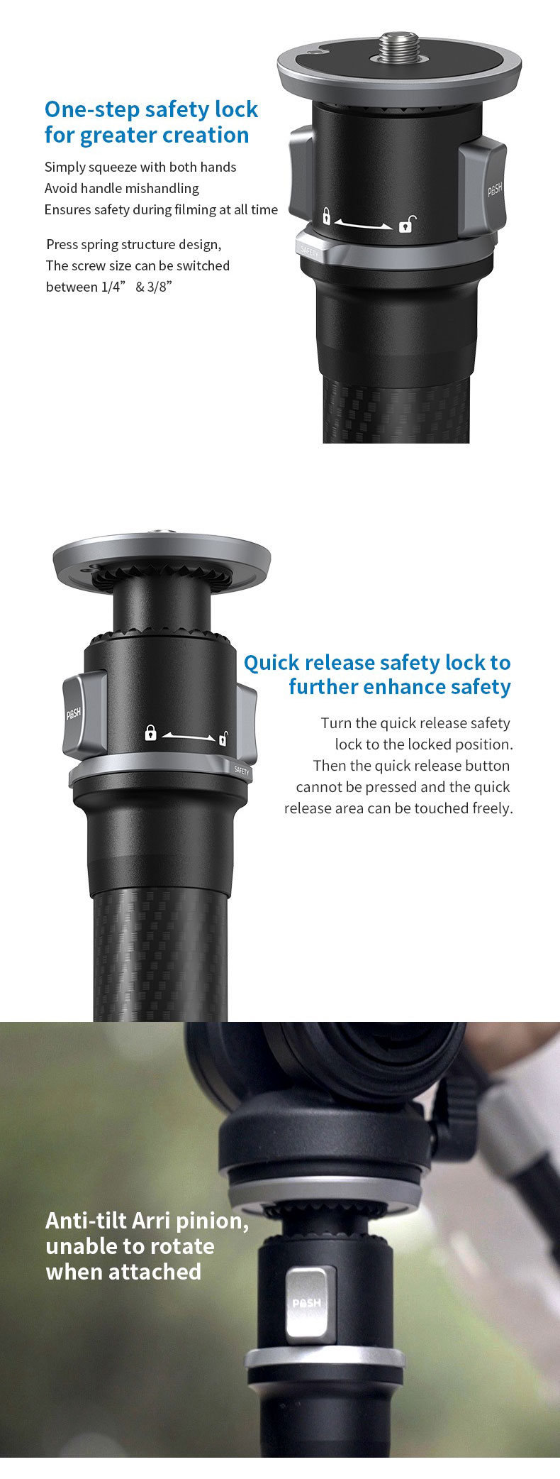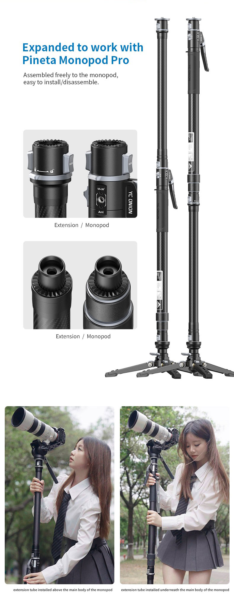 - Có thể lắp ráp dễ dàng vào chân máy đơn, dễ dàng lắp đặt/tháo rời.