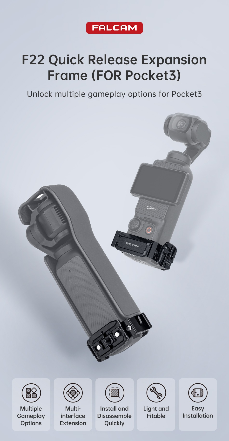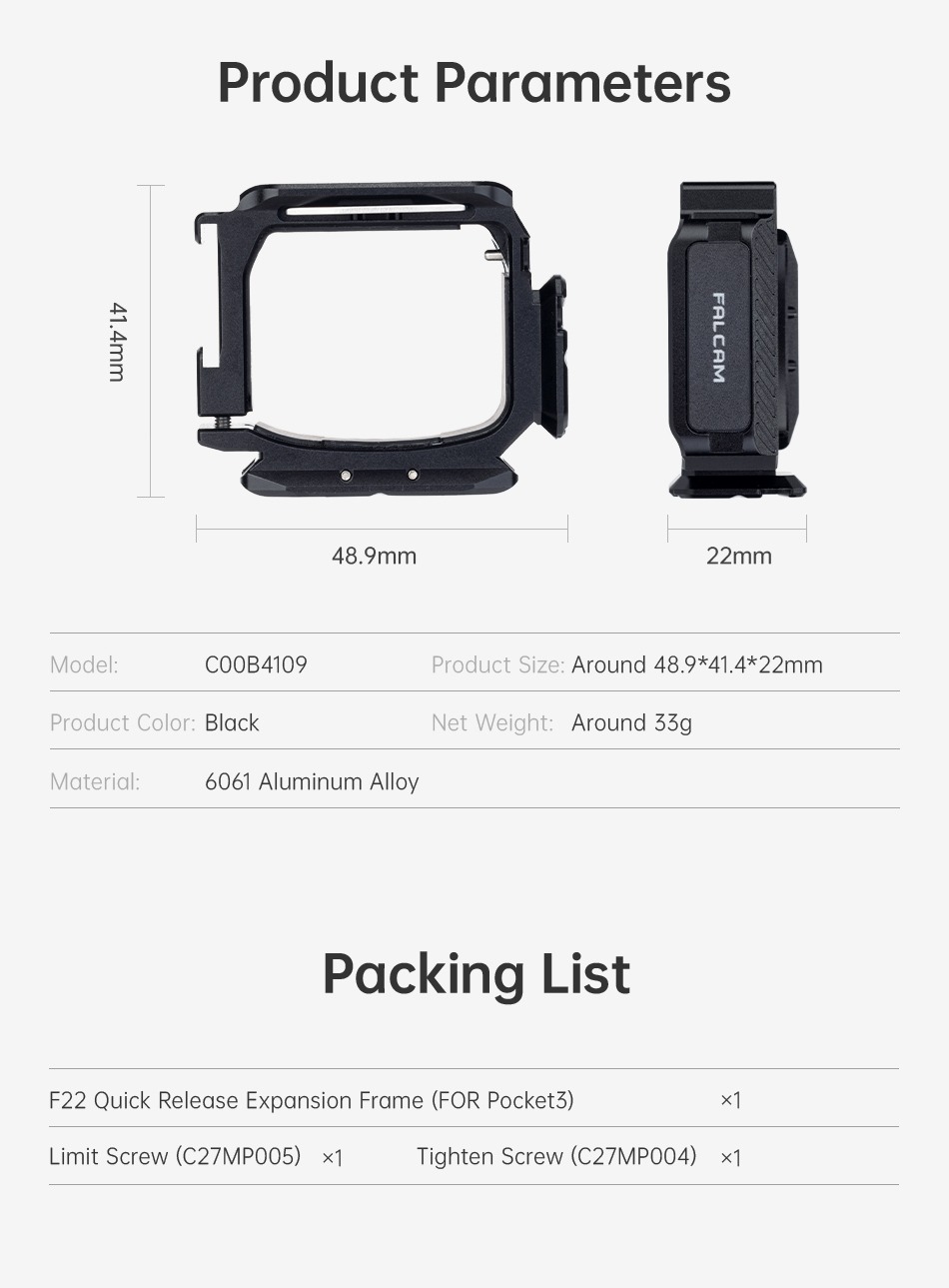 - 1 x Khung mở rộng tháo lắp nhanh F22 (DÀNH CHO Pocket3)