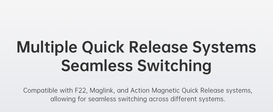 - Tương thích với các hệ thống F22, Maglink và Action Magnetic Quick Release, cho phép chuyển đổi liền mạch giữa các hệ thống khác nhau.