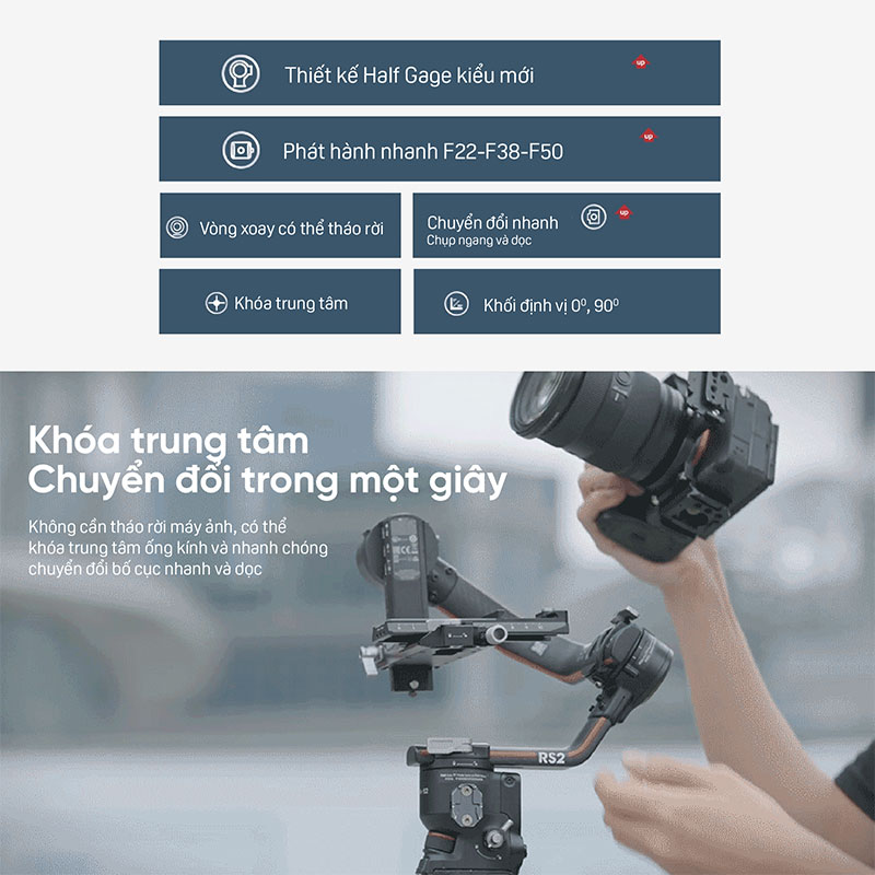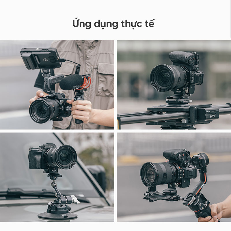-Với DJI Gimbals Hit it off: Đế máy ảnh tương thích với giao diện nhả nhanh bộ ổn định DJl và có thể được kết nối trực tiếp với DJI RS 3 / RS 2 / RSC 2 để sử dụng.