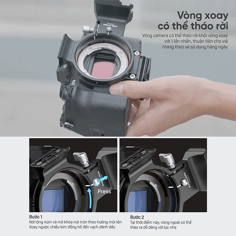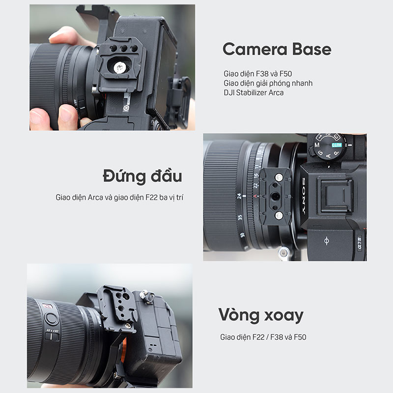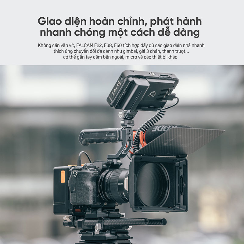 -Giao diện hoàn chỉnh, tháo lắp nhanh dễ dàng: FALCAM F22, F38 và F50 tích hợp đầy đủ các giao diện nhả nhanh, có thể thích ứng với chuyển đổi đa cảnh như gimbal, giá ba chân, thanh trượt, v.v.