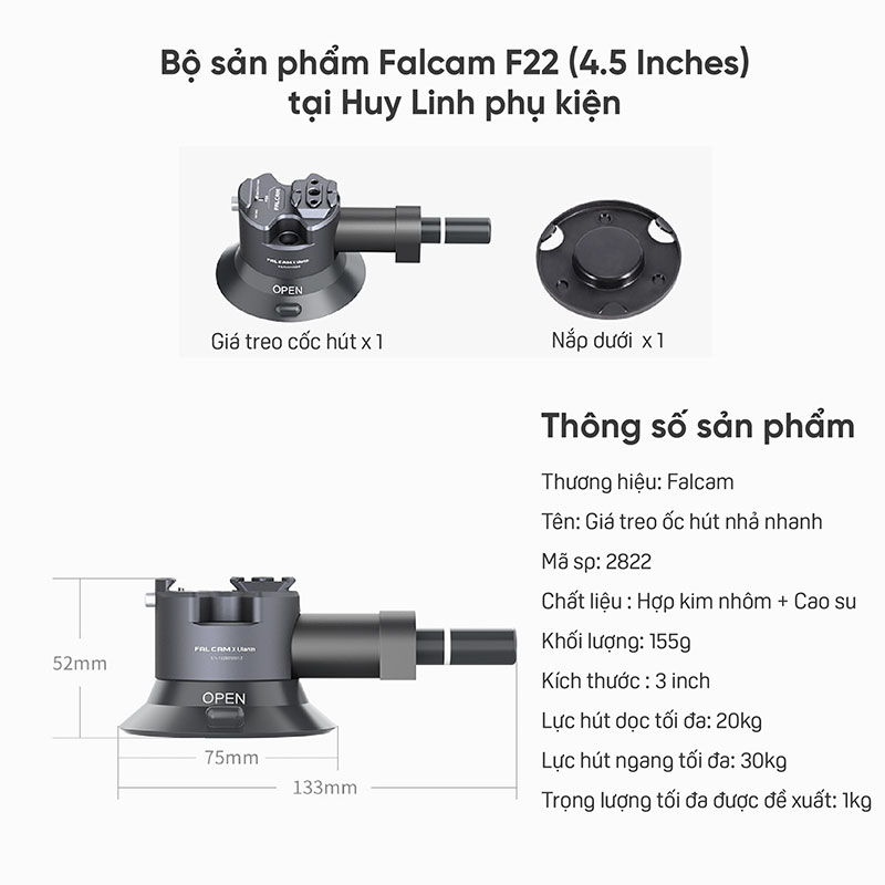 -Tải trọng 2,2 lb, cốc hút 3 inch