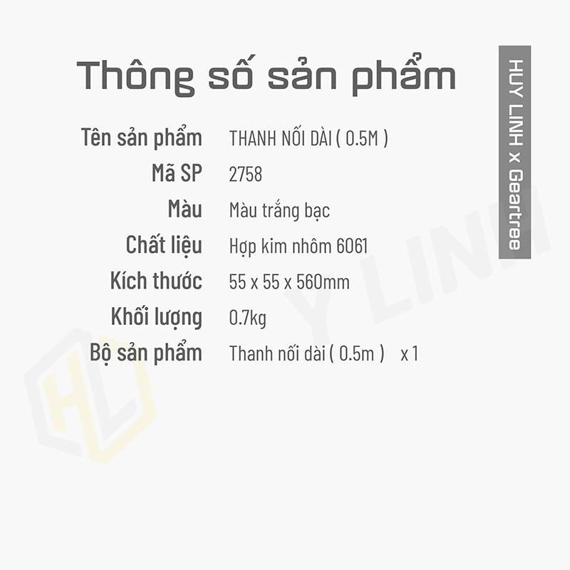 - Chiều dài thanh mở rộng: 0.5M