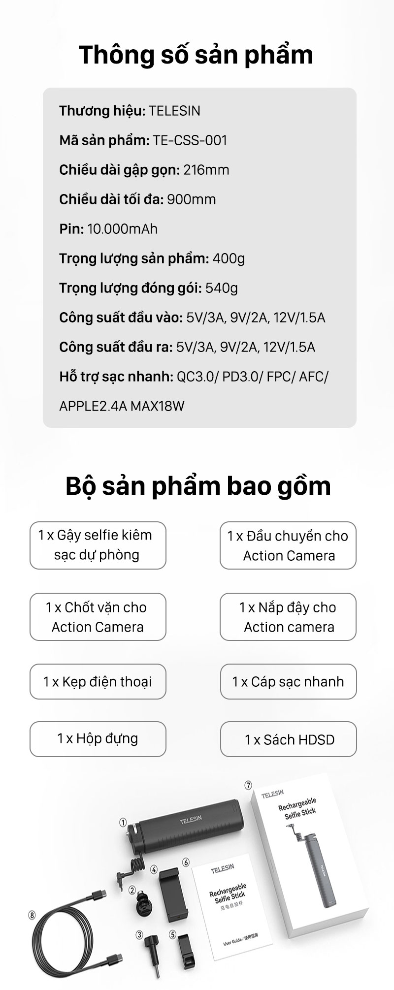 - 1 x Gậy selfie kiêm sạc dự phòng