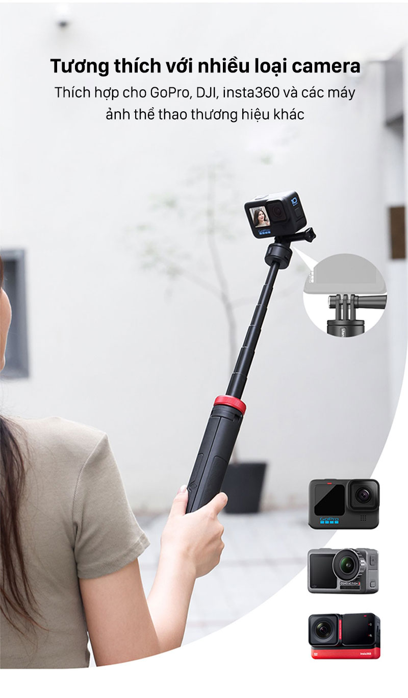 - Thích hợp cho GoPro, DJI, insta360 và các máy ảnh thể thao thương hiệu khác