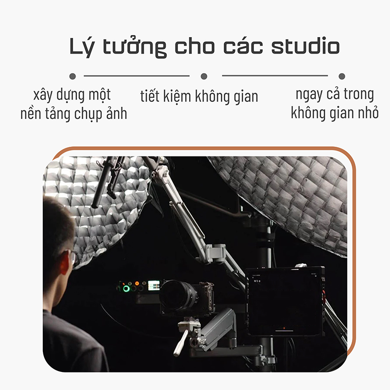 - Geartree áp dụng ý tưởng mới về "Hỗ trợ giữa sàn và trần nhà", giúp các nhiếp ảnh gia tiết kiệm không gian và xây dựng một nền tảng chụp ảnh công việc mạnh mẽ khi sáng tạo ngay cả trong không gian nhỏ trong nhà.