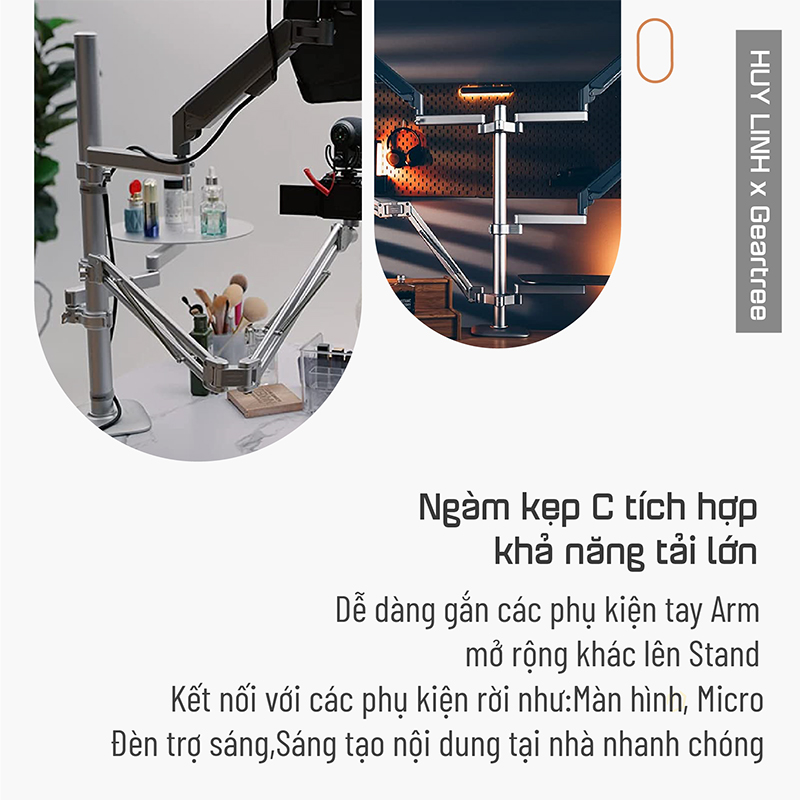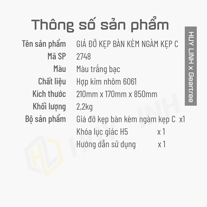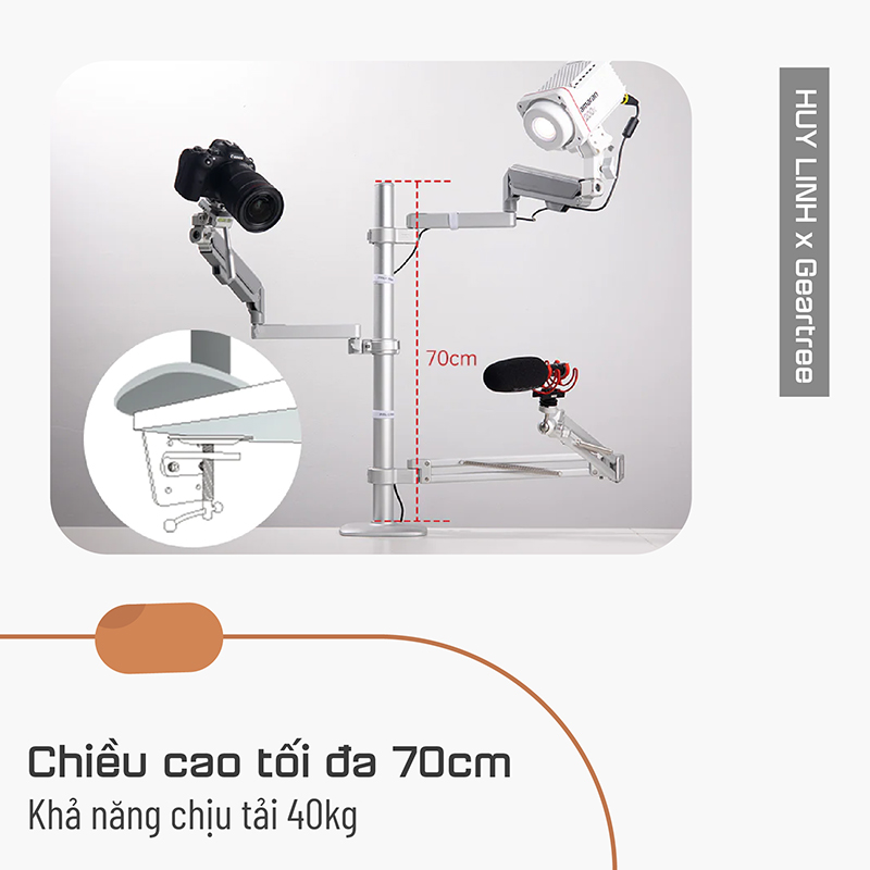 - Chiều cao 70cm dược cố định bằng cách kẹp vào cạnh bàn ( độ dày từ 9 - 55mm )