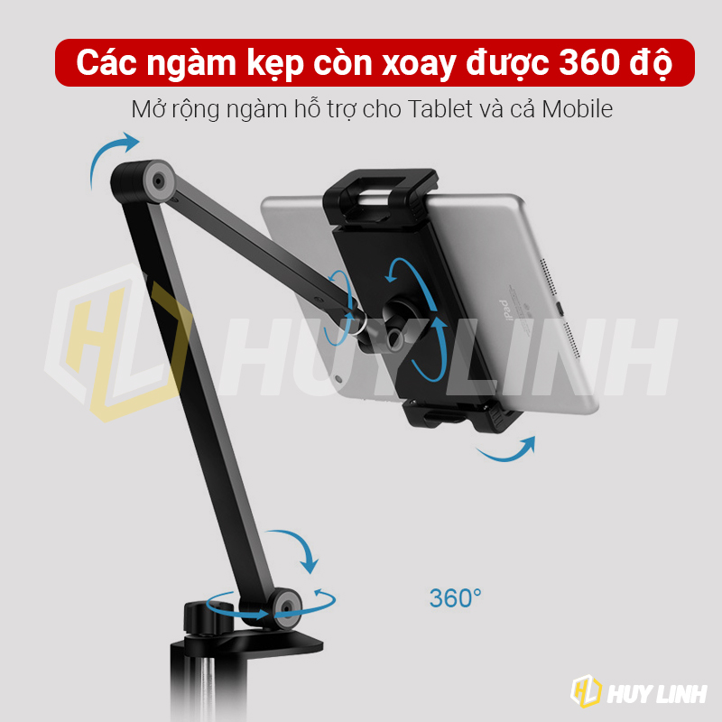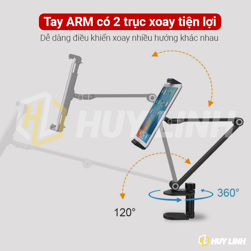 - 1 x Cánh tay ARM giá đỡ iPad/iPhone kẹp bàn