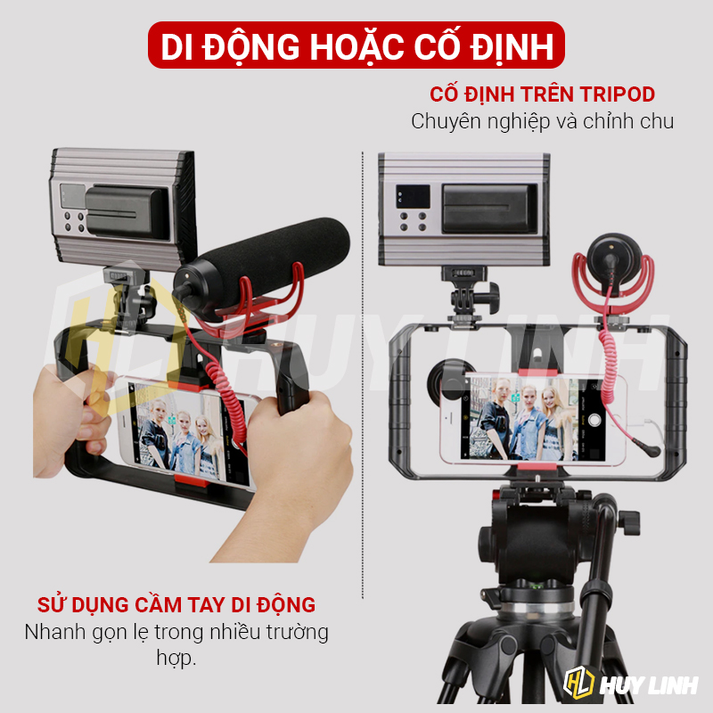 - Bạn có thể gắn thêm đèn, micro và các thiết bị hỗ trợ khác lên khung đỡ, giúp công việc làm phim trở nên chuyên nghiệp hơn.