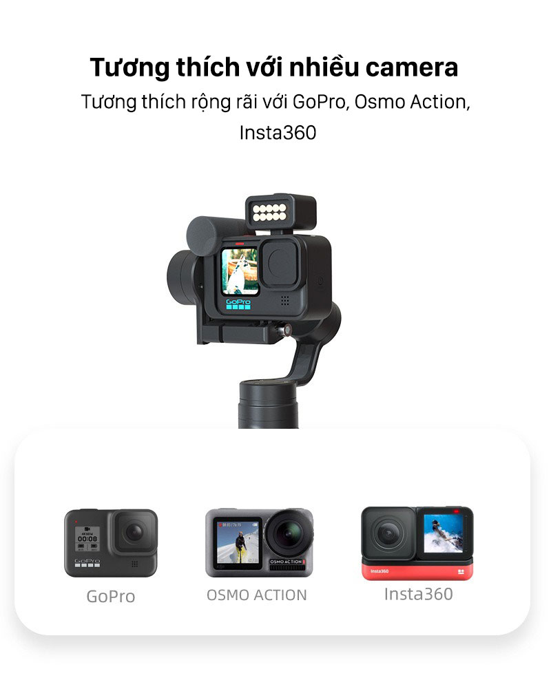 - Tương thích với hầu hết các loại camera hành động trên thị trường