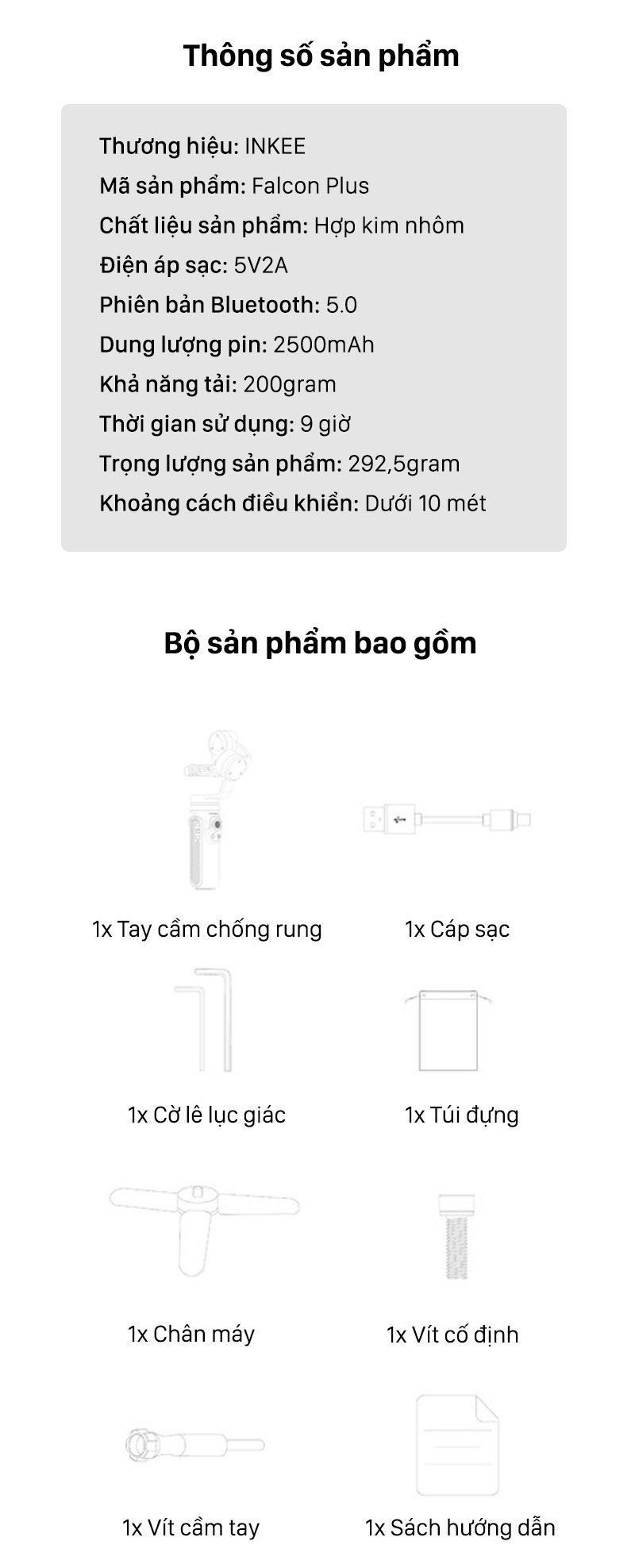 - Mã sản phẩm: Gimbal INKEE Falcon Plus