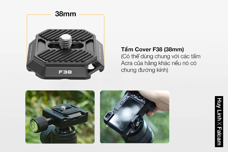 Con số F38 của Falcam ở đây ám chỉ là tấm Cover phía trên là Acra tiêu chuẩn 38mm. Thứ 1 là tụi nó có thể chung chạn được với nhau, Thứ 2 là nó có thể dùng chung với các hãng khác cũng được luôn (miễn sao tấm Base dưới có kích thước đường kính là 38mm)