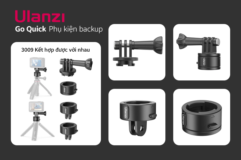 Điểm thú vị và lôi cuốn của hệ sinh thái này là các phụ kiện có thể sử dụng chung chéo được với nhau, nó gắn kết với nhau thông qua một ngàm Mount định vị mà Ulanzi gọi đó là GO QUICK Series SYSTEM