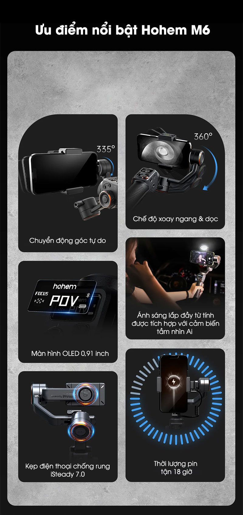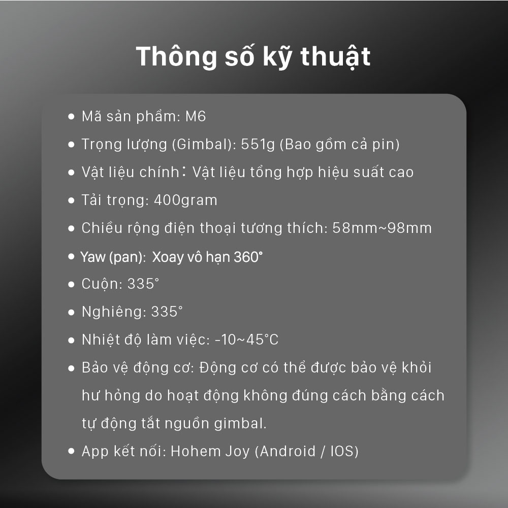 - 1 x Gimbal chống rung cho điện thoại Hohem M6