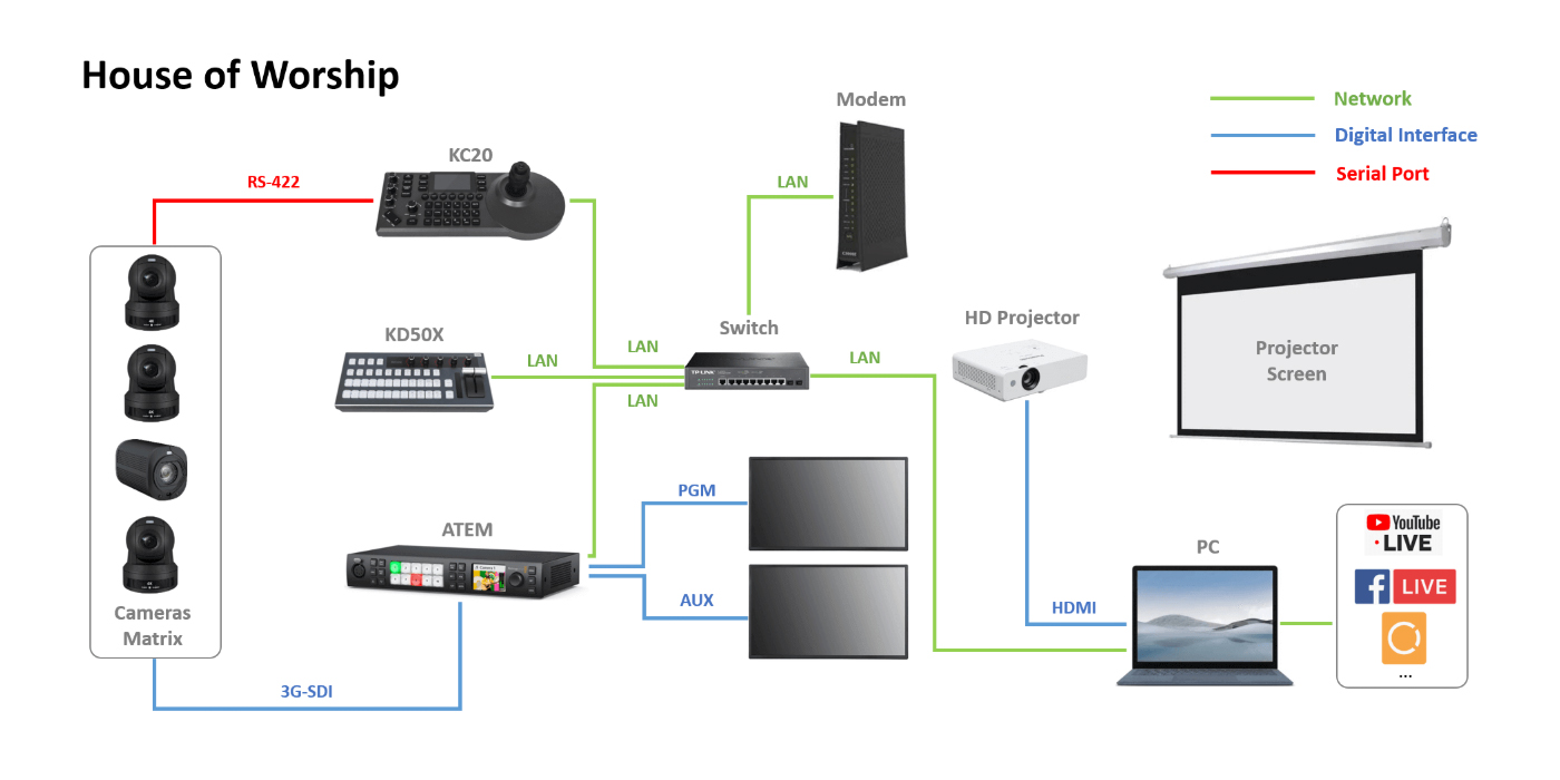 Truyền phát video đã nổi lên như một công cụ quan trọng để các Nhà thờ trong thế giới hiện đại kết nối với các giáo đoàn của họ. Truyền thông video đã trở nên quan trọng hơn do đại dịch COVID-19 và đã khẳng định mình là tiêu chuẩn mới để duy trì kết nối giữa con người. Bằng cách sử dụng các công cụ truyền phát như máy quay, Nhà thờ có thể thu hút người theo dõi của họ ở bất cứ đâu và mở rộng phạm vi tiếp cận của họ vượt ra ngoài các bức tường vật lý của họ. Điều này rất quan trọng để thu hút khán giả trẻ hơn vì họ có nhiều khả năng tương tác với nội dung trực tuyến hơn. Máy quay mang tính cách mạng và các ứng dụng phần mềm cũng giúp tạo ra các buổi biểu diễn năng động tại địa điểm để giữ chân người tham dự và thúc đẩy chất lượng sản xuất ở mức cao hơn.