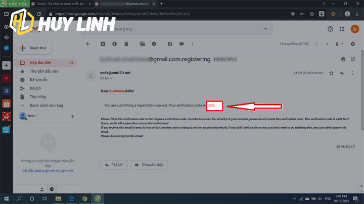 Sau khi bấm Lấy mã ID các bạn kiểm tra lại email dùng đăng ký để lấy mã xác nhận.