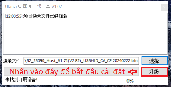 Nhấn nút "升级" để bắt đầu sau đó đợi chương trình update hoàn thành.