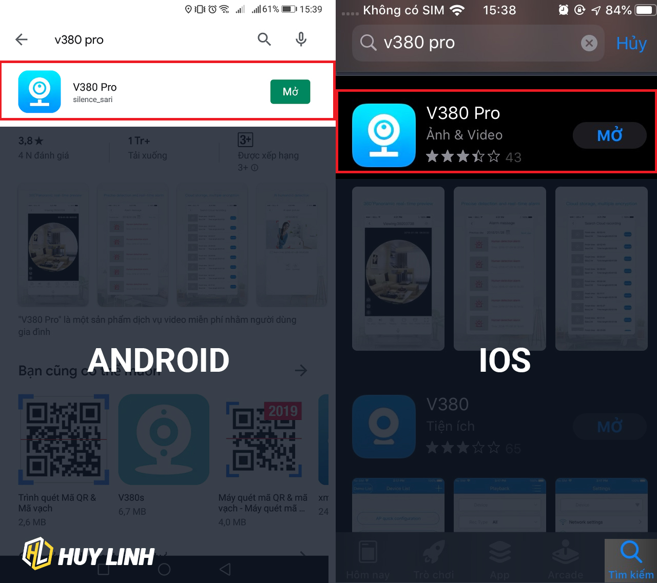 Bước 2: Tải App V380 Pro cho điện thoại trực tiếp từ cửa hàng CHPlay hoặc AppStore