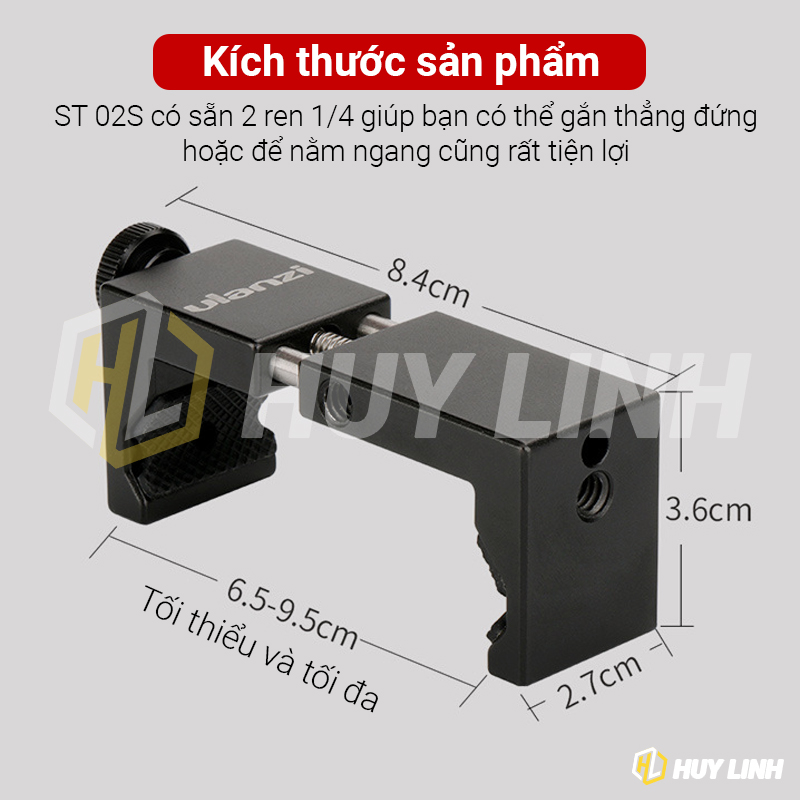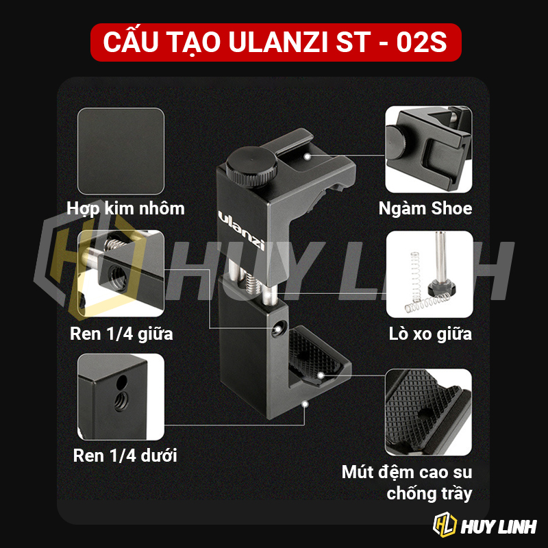 - Kẹp Điện Thoại Ulanzi ST-02S Là phụ kiện quay phim để gắn điện thoại lên tay cầm, tripod hoặc các bộ combo ghi hình.