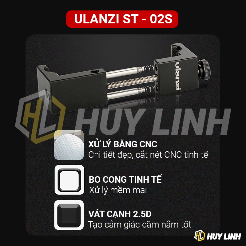 - Ulanzi ST-02 được gia công từ hợp kim nhôm nguyên khối với chất lượng và độ bền cao, thiết kế từng đường nét sắc sảo với công nghệ CNC tiên tiến.